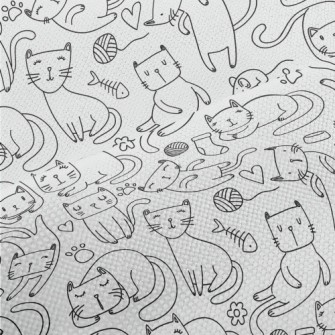 線條塗鴉玩耍貓咪斜紋布(幅寬150公分)