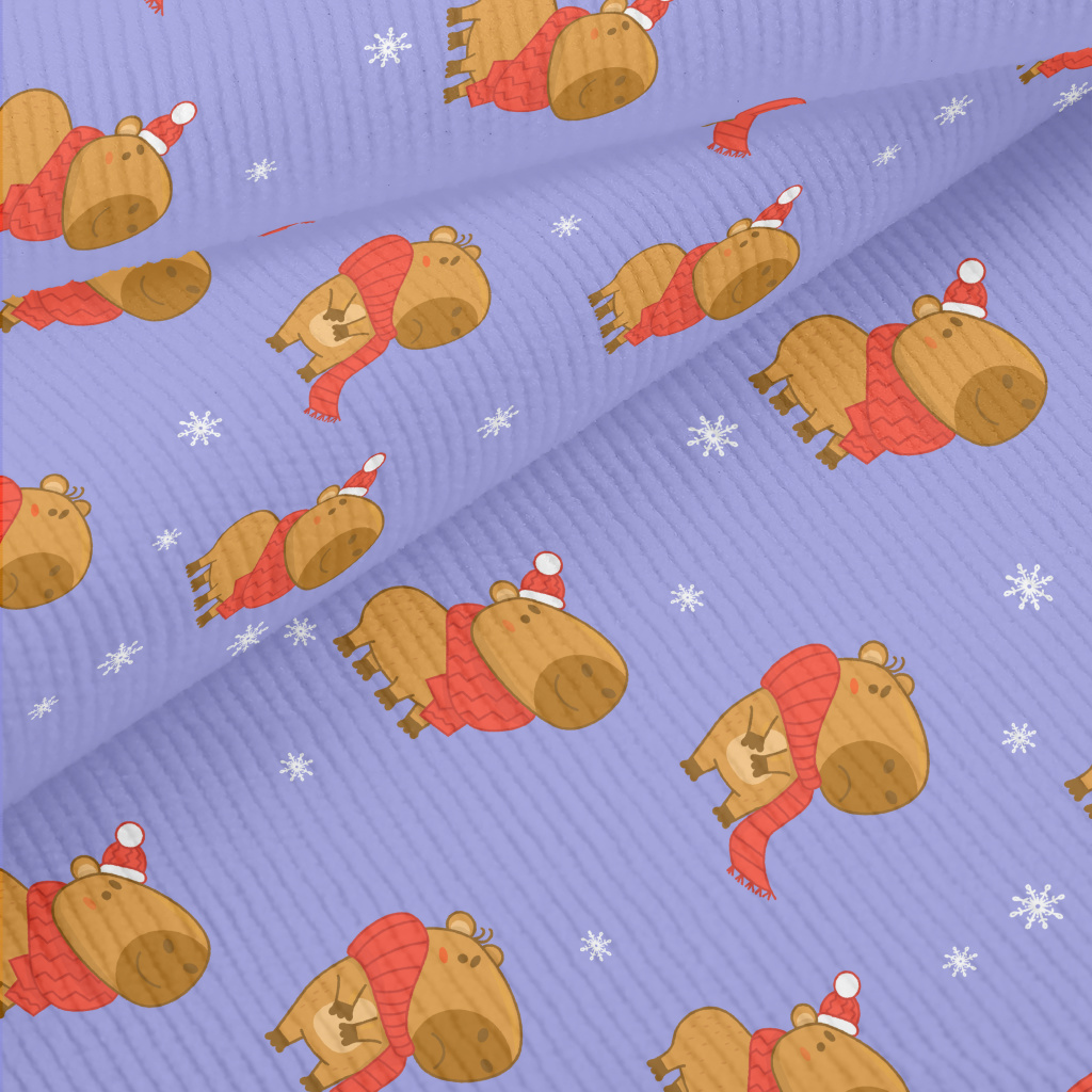 聖誕節水豚和雪花燈芯絨(幅寬150公分)