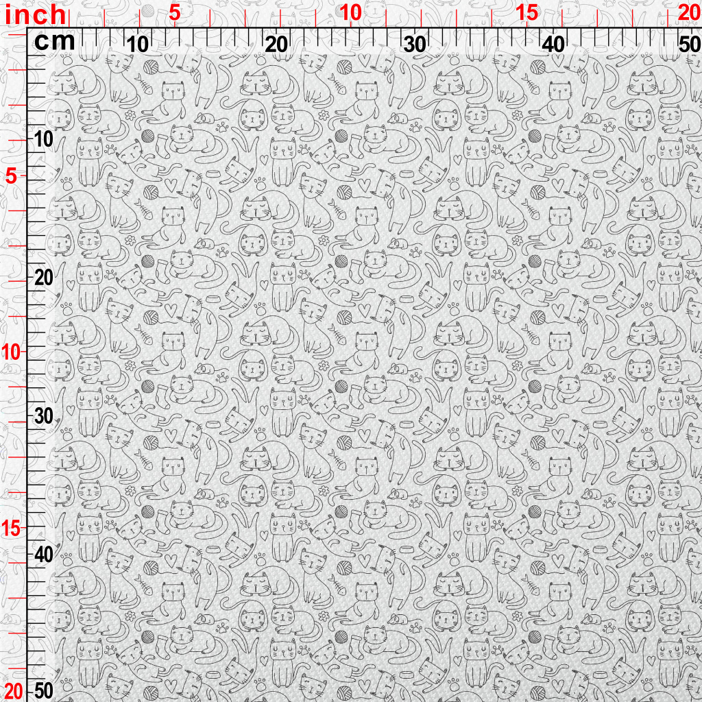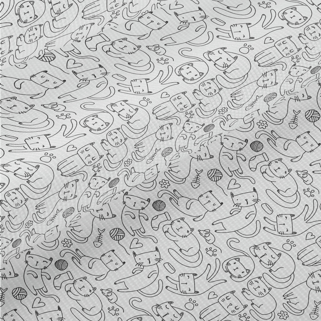 線條塗鴉玩耍貓咪雙斜布(幅寬150公分)