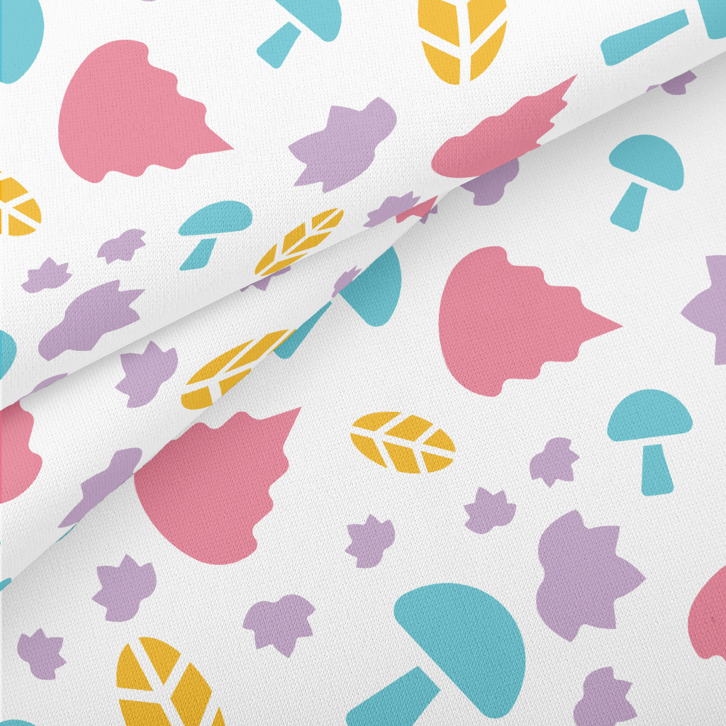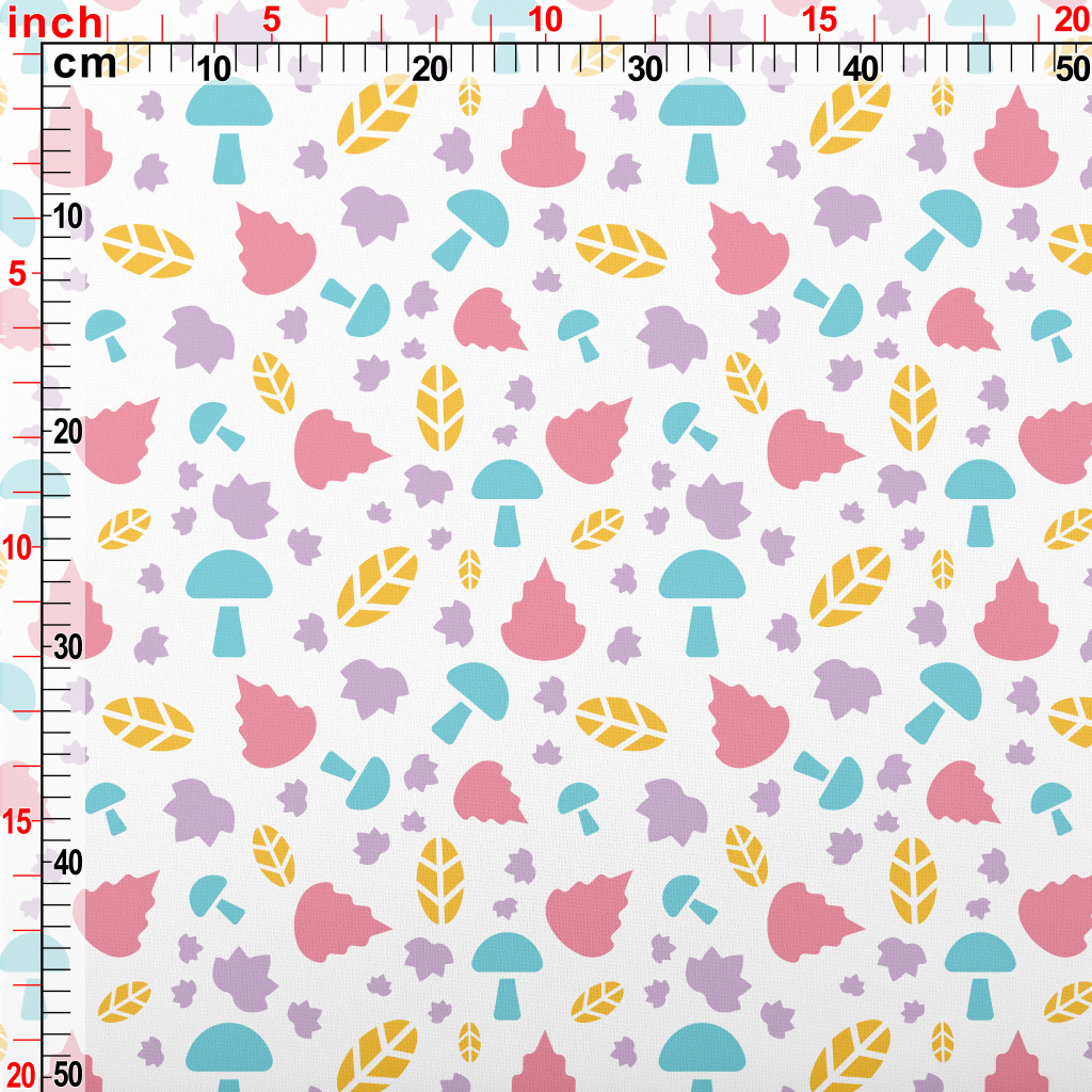 藍色香菇與彩色葉子羅馬布(幅寬160公分)