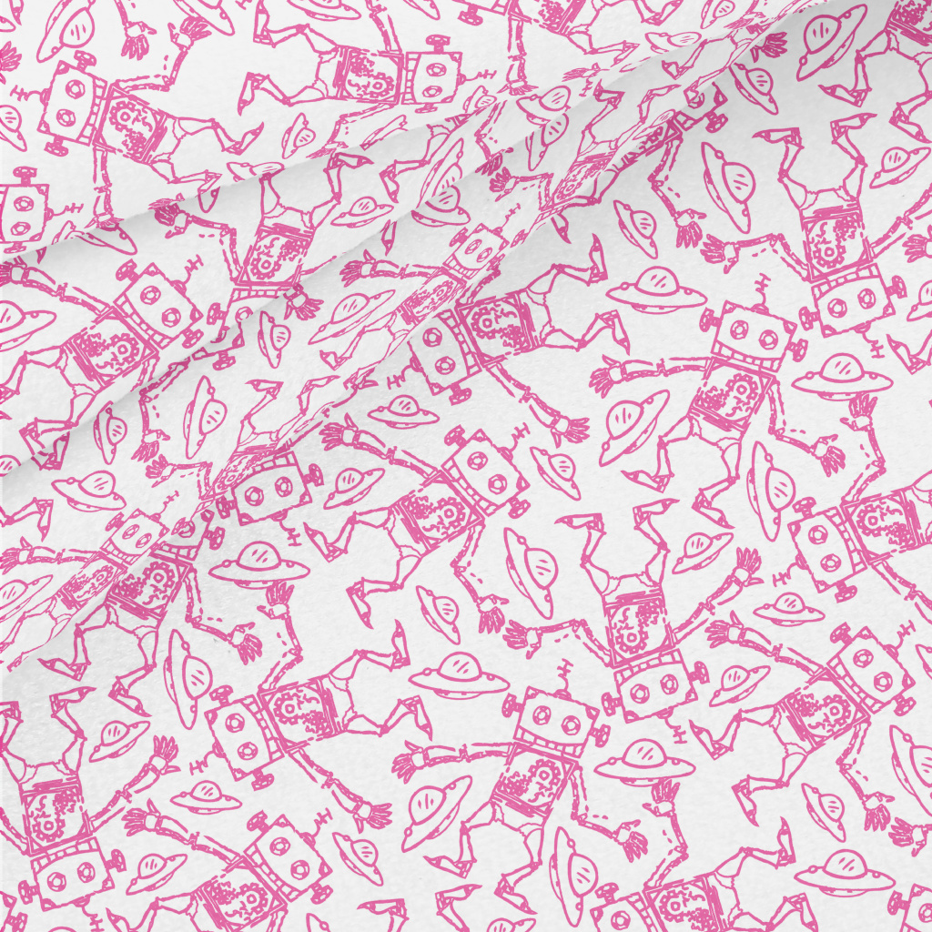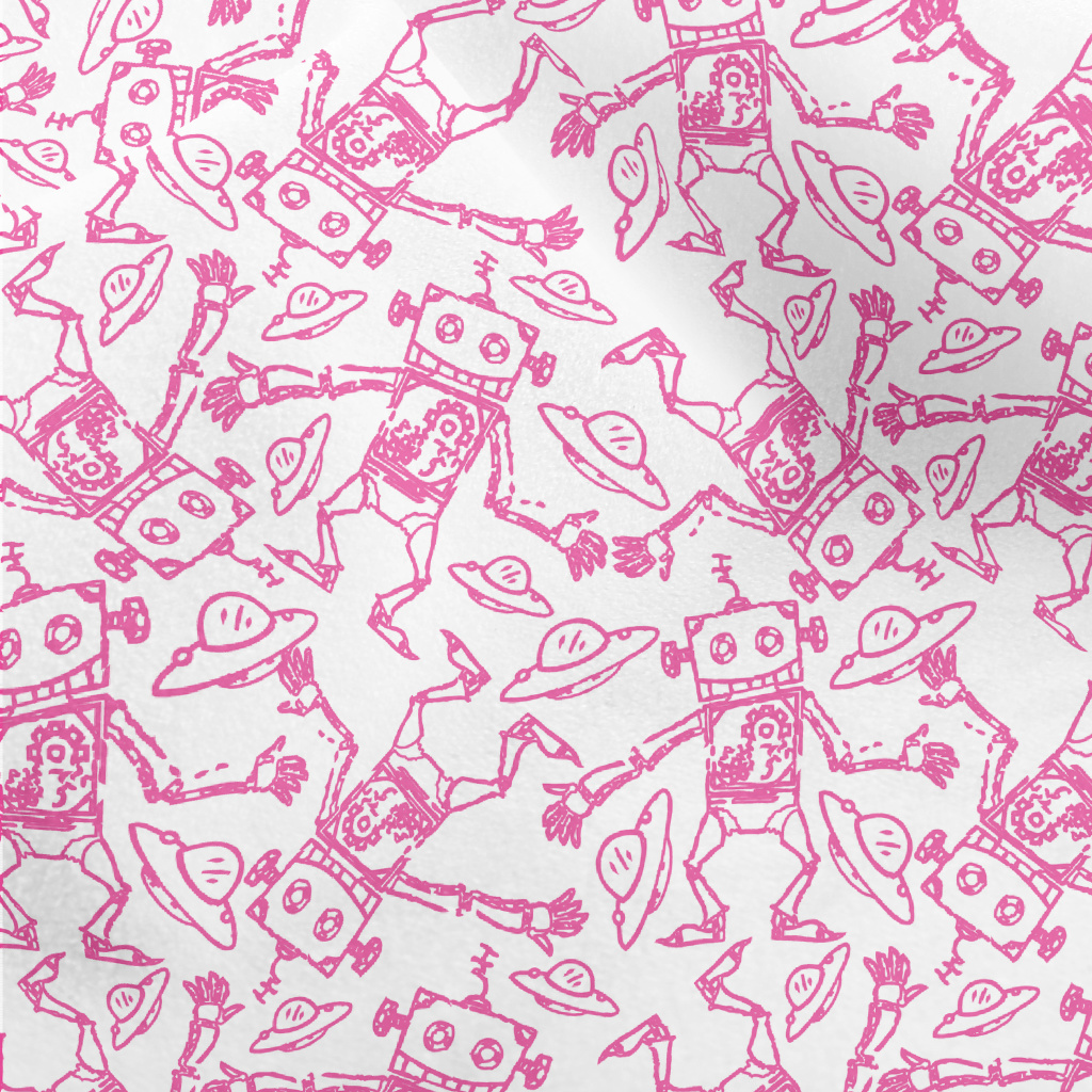 粉色塗鴉機器人和飛碟水晶絨(幅寬160公分)