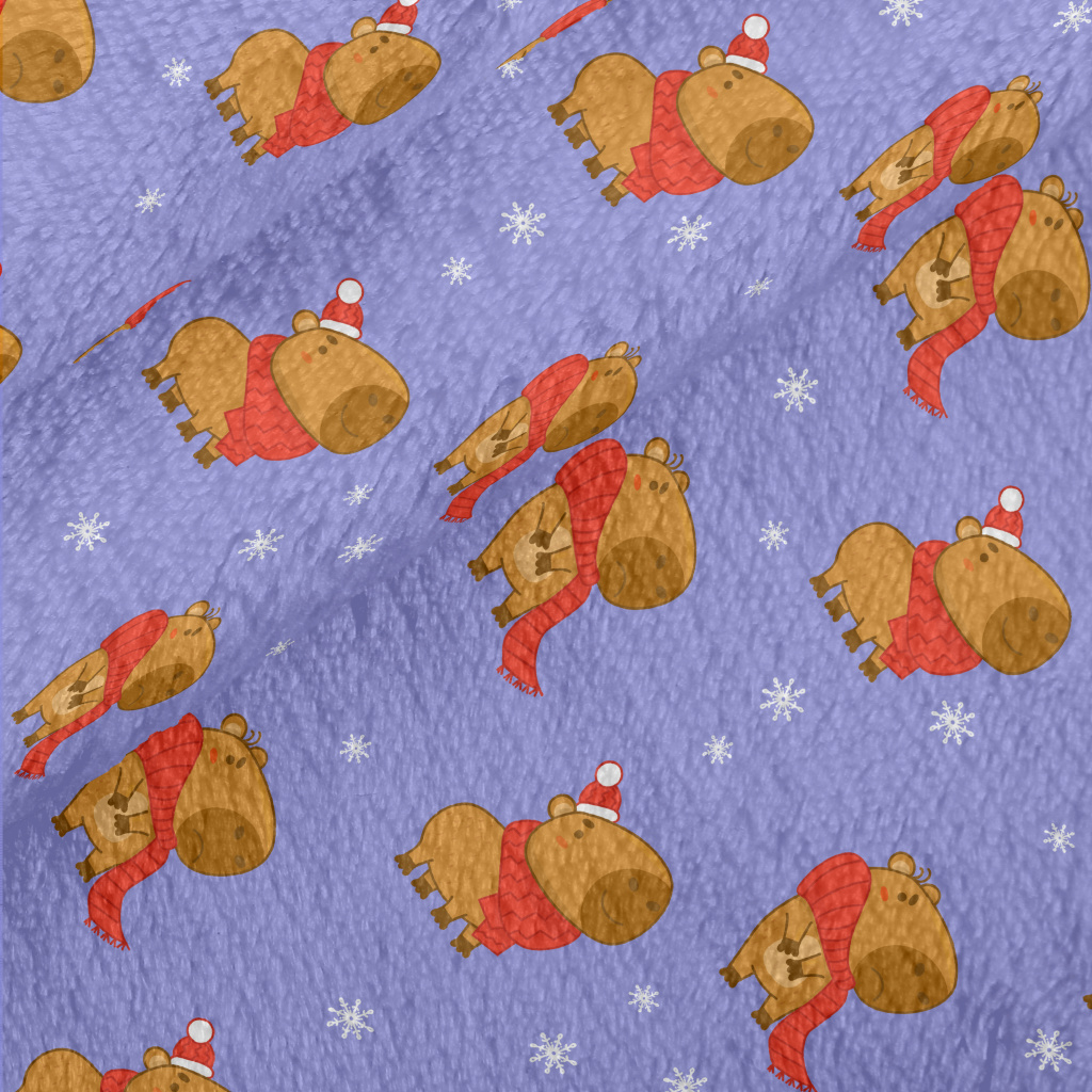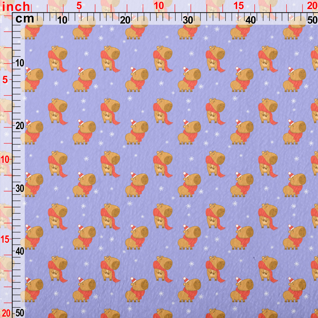聖誕節水豚和雪花法蘭絨(幅寬150公分)
