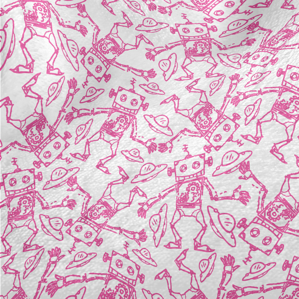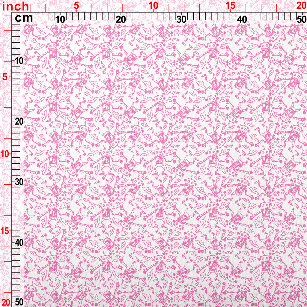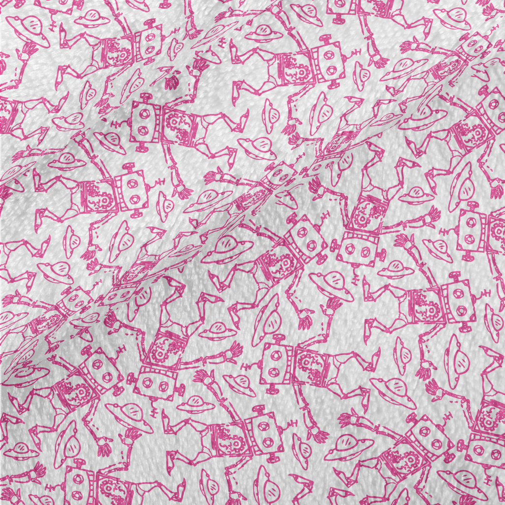 粉色塗鴉機器人和飛碟法蘭絨(幅寬150公分)