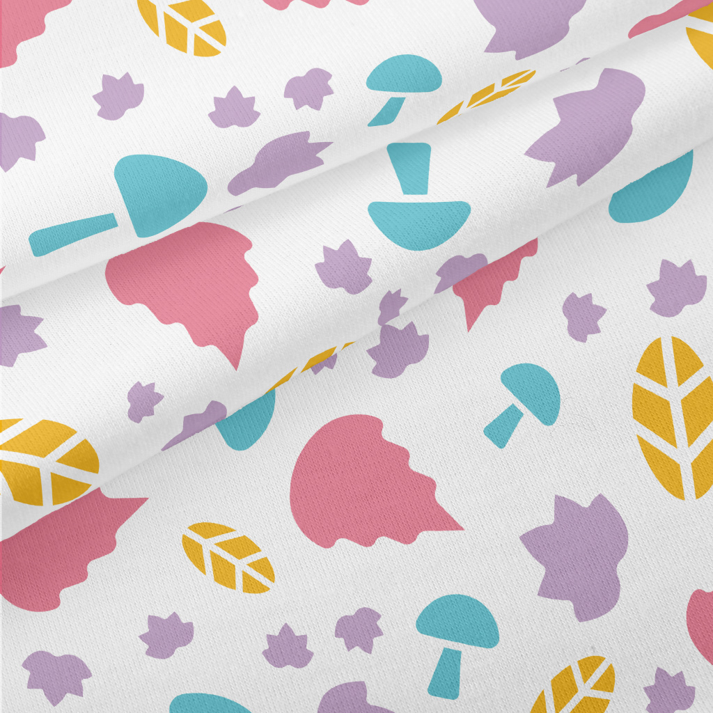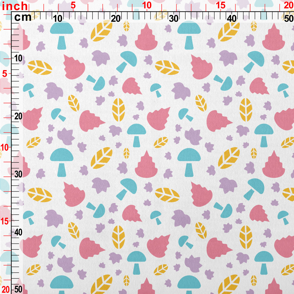 藍色香菇與彩色葉子仿棉布(幅寬150公分)