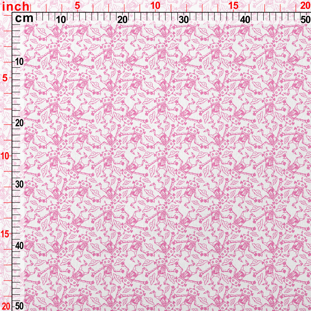 粉色塗鴉機器人和飛碟仿棉布(幅寬150公分)