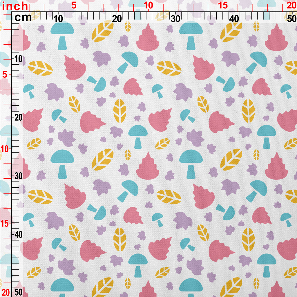 藍色香菇與彩色葉子刷毛布(幅寬150公分)