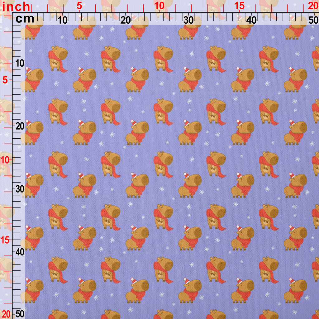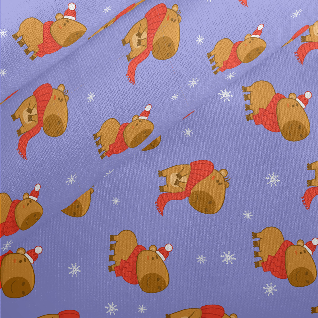 聖誕節水豚和雪花刷毛布(幅寬150公分)