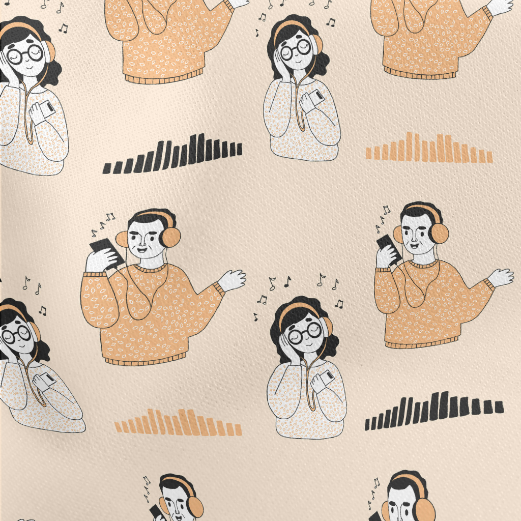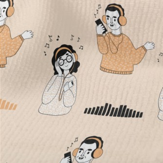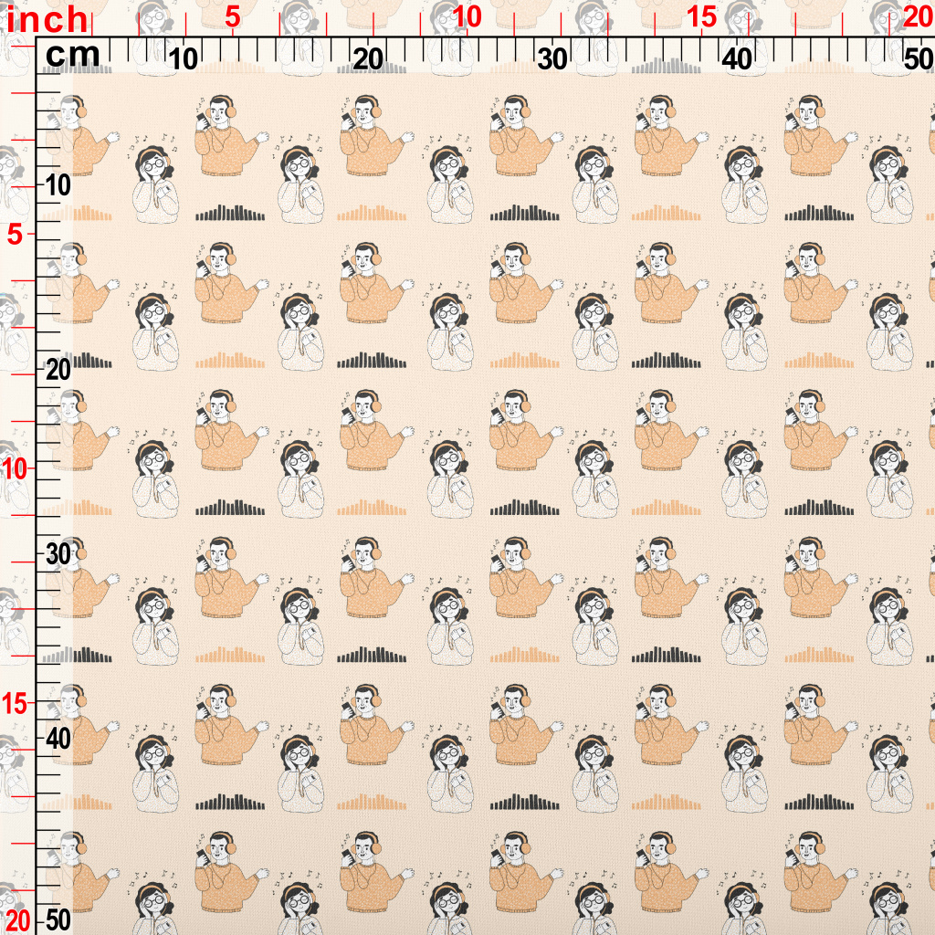 聽音樂的男生女生薄棉布(幅寬150公分)
