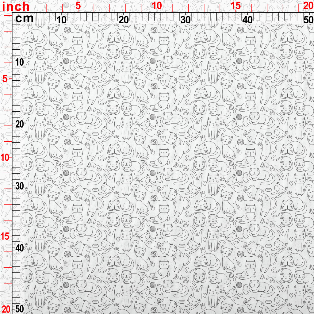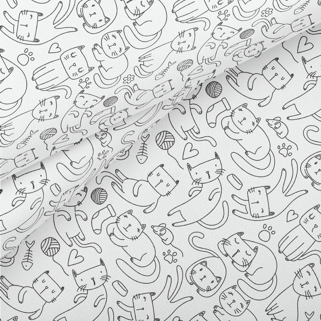 線條塗鴉玩耍貓咪薄棉布(幅寬150公分)