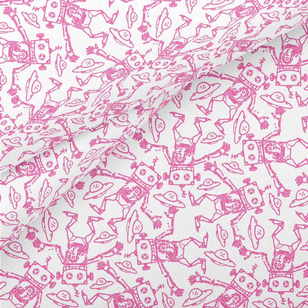 粉色塗鴉機器人和飛碟薄棉布(幅寬150公分)