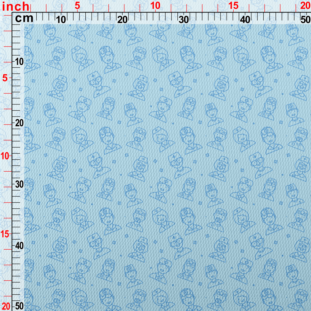 藍色線條護士和醫生泡泡布(幅寬160公分)
