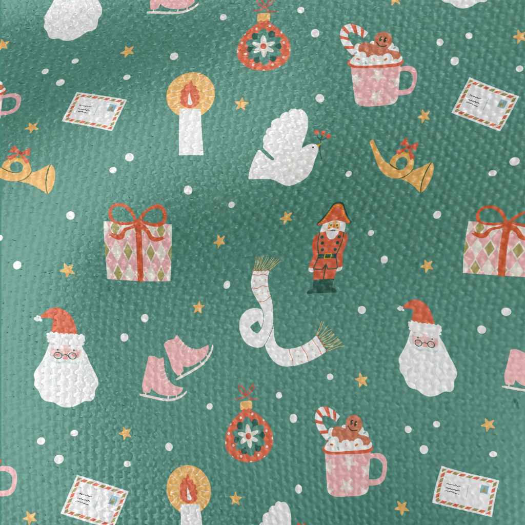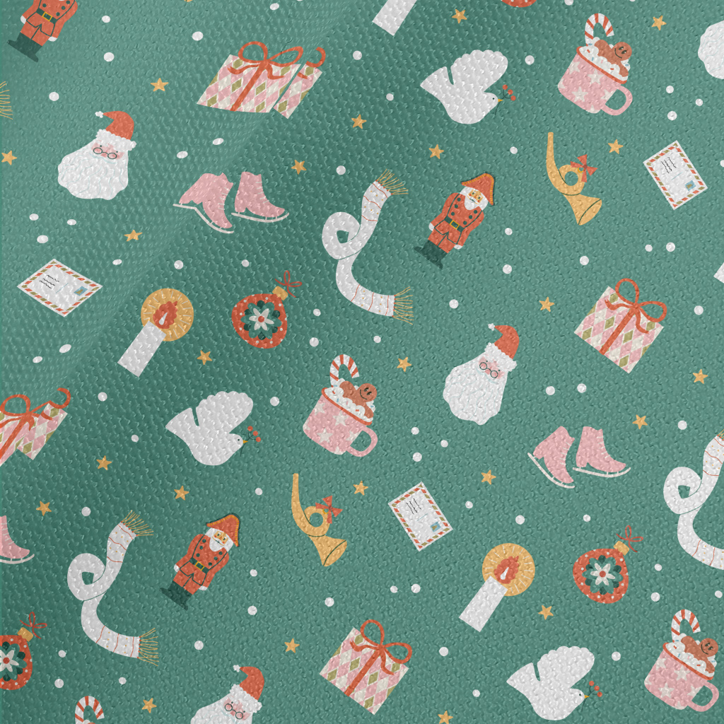 聖誕老人與物品禮物圖案帆布(幅寬150公分)