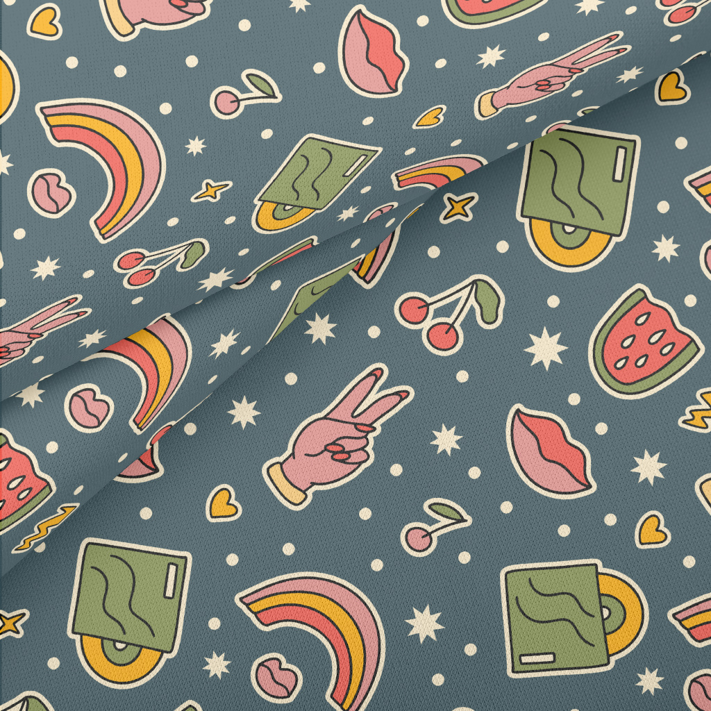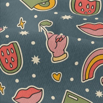 彩虹手嘴巴櫻桃圖案羅馬布(幅寬160公分)