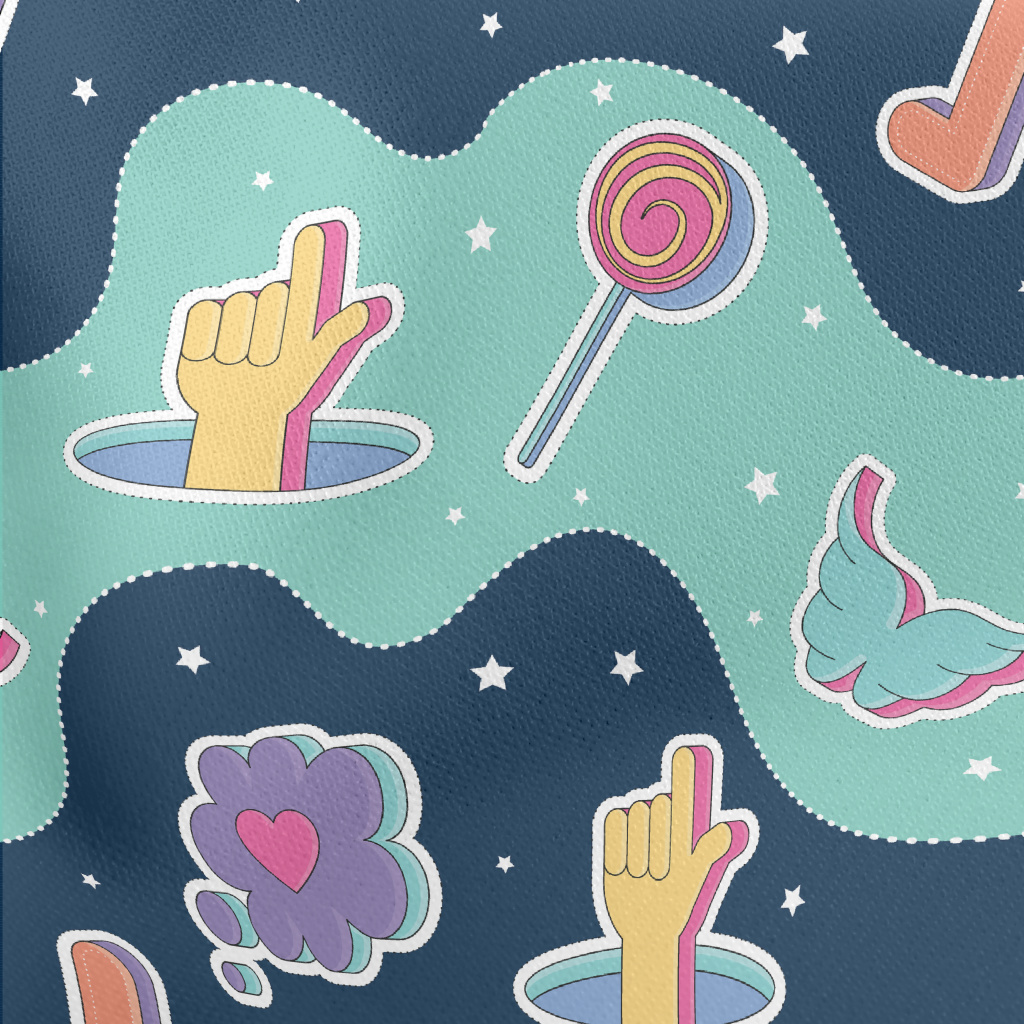 彩色手勢棒棒糖愛心圖案羅馬布(幅寬160公分)