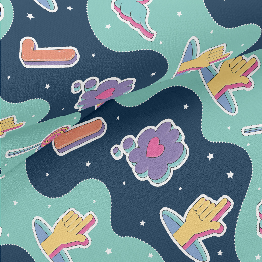 彩色手勢棒棒糖愛心圖案竹節麻(幅寬150公分)