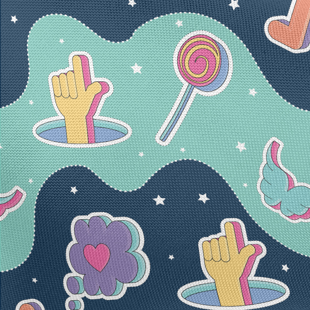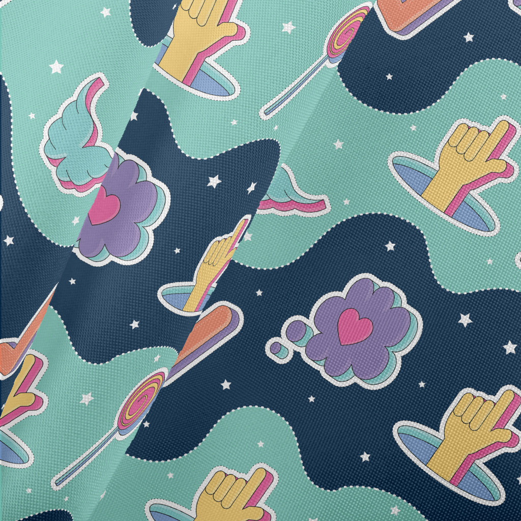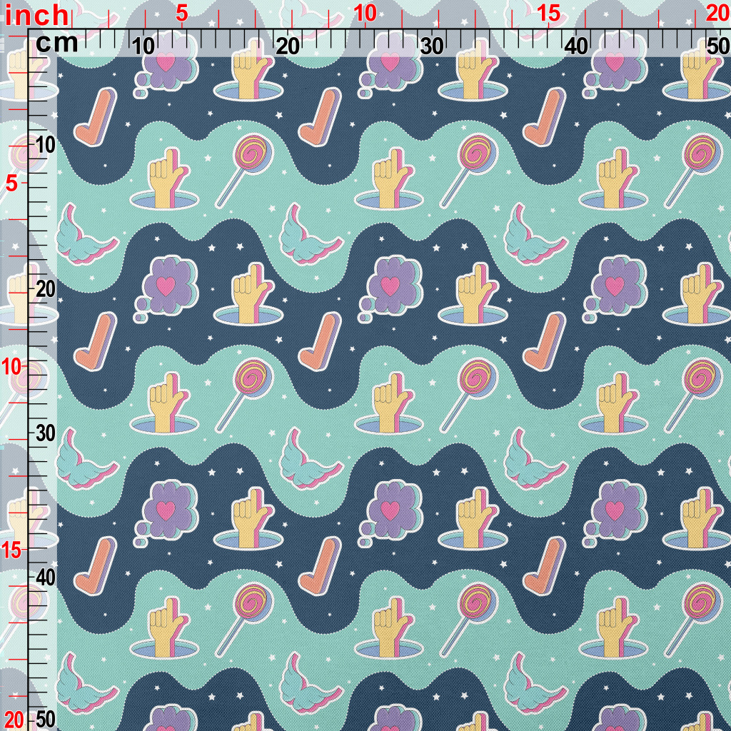 彩色手勢棒棒糖愛心圖案春亞紡(幅寬160公分)