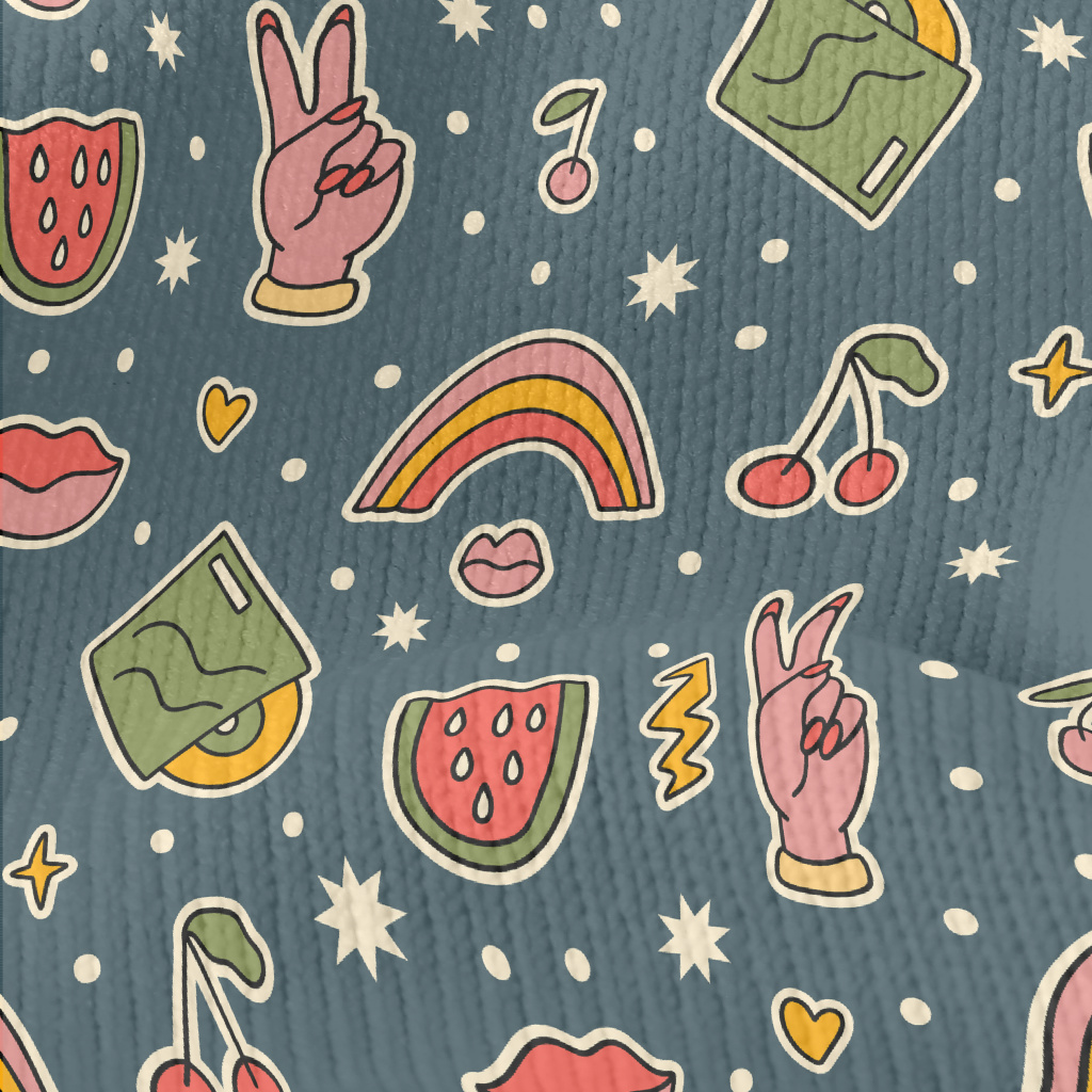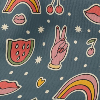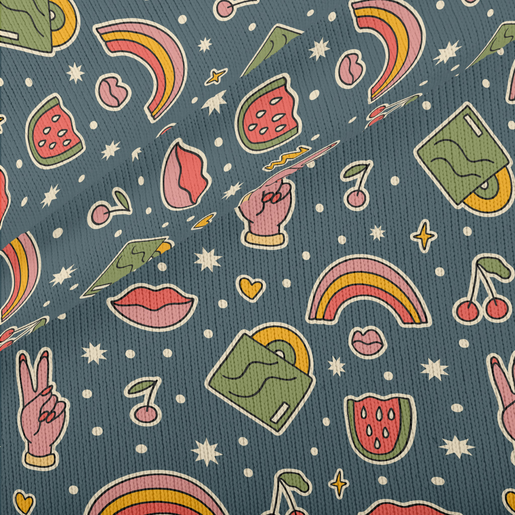 彩虹手嘴巴櫻桃圖案仿毛衣布(幅寬150公分)