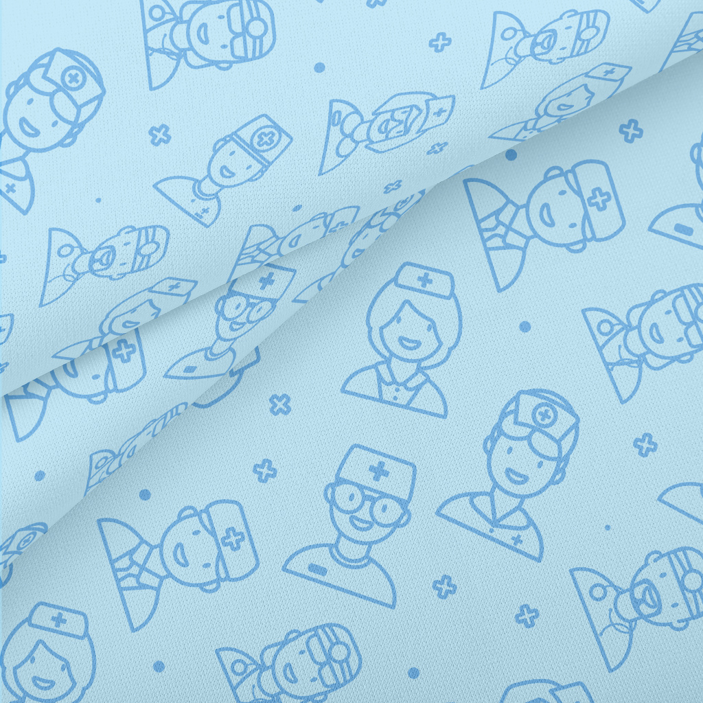 藍色線條護士和醫生薄棉布(幅寬150公分)