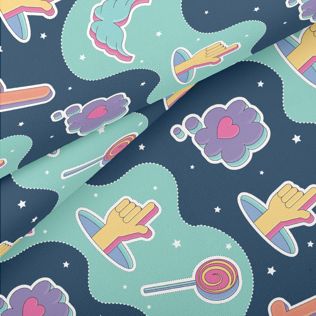 彩色手勢棒棒糖愛心圖案薄棉布(幅寬150公分)