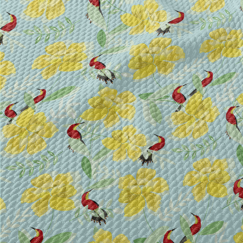 花卉綠葉和蜂鳥泡泡布(幅寬160公分)