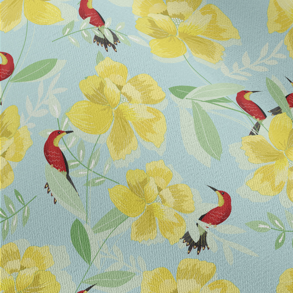 花卉綠葉和蜂鳥雪紡布(幅寬150公分)
