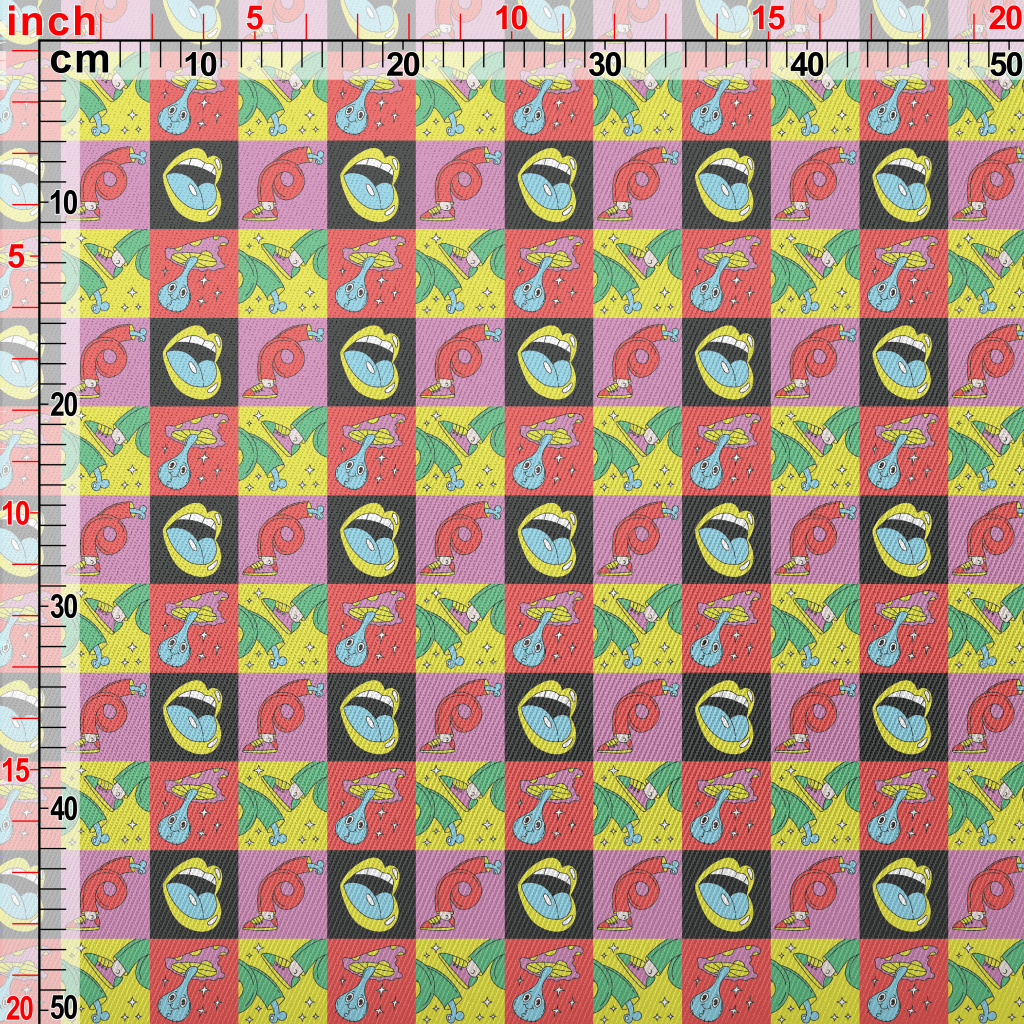 迷幻卡通彩色格子圖案斜紋布(幅寬150公分)