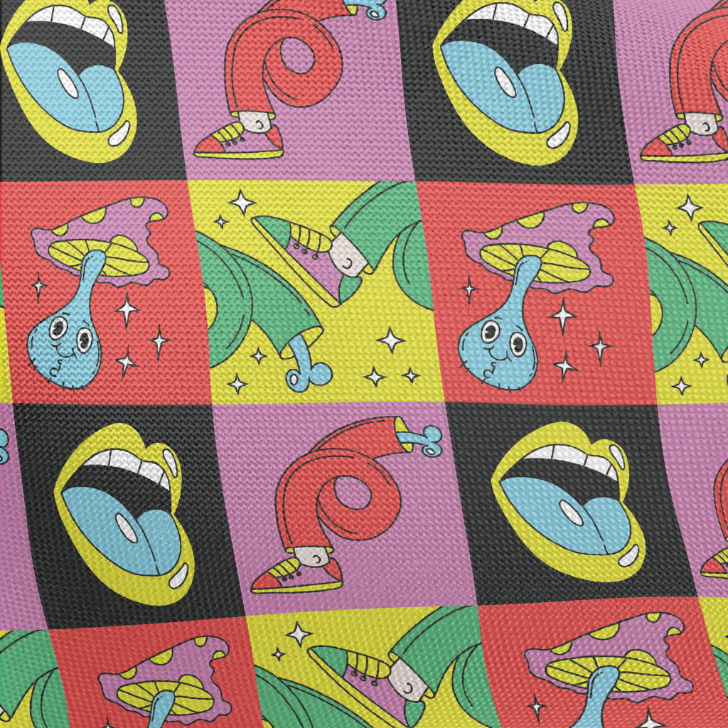 迷幻卡通彩色格子圖案春亞紡(幅寬160公分)
