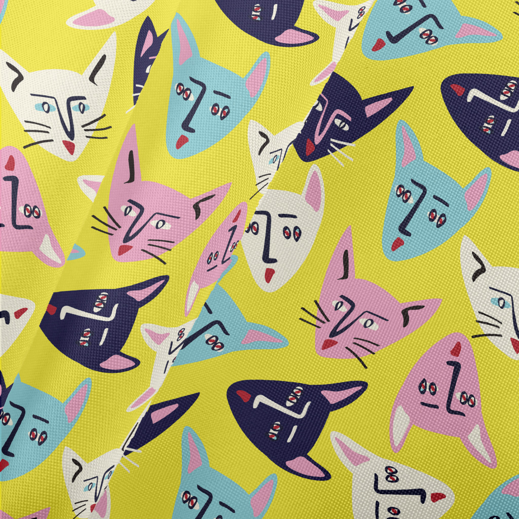 抽象彩色貓咪春亞紡(幅寬160公分)
