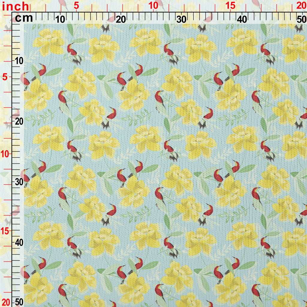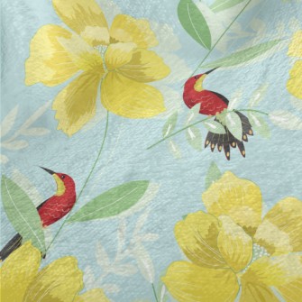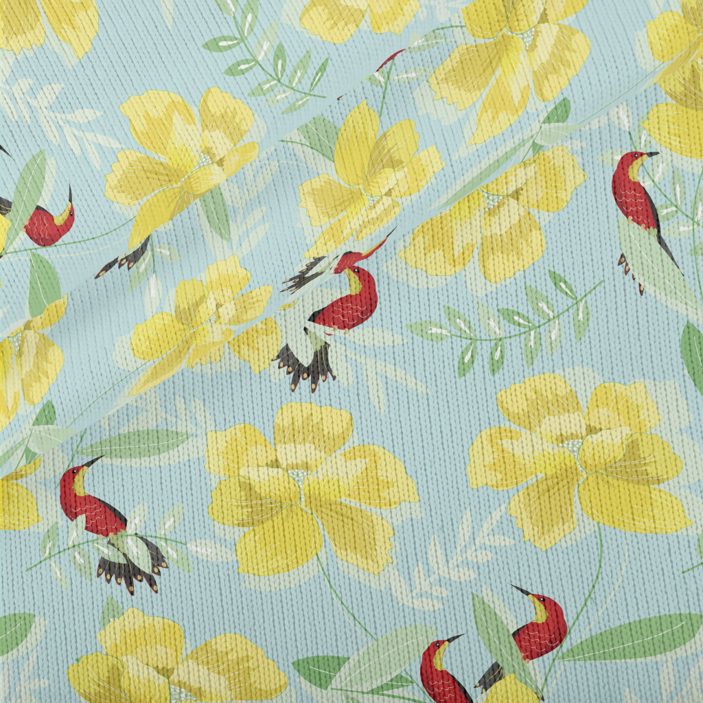 花卉綠葉和蜂鳥仿毛衣布(幅寬150公分)