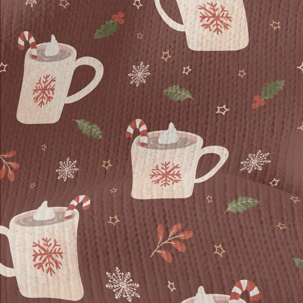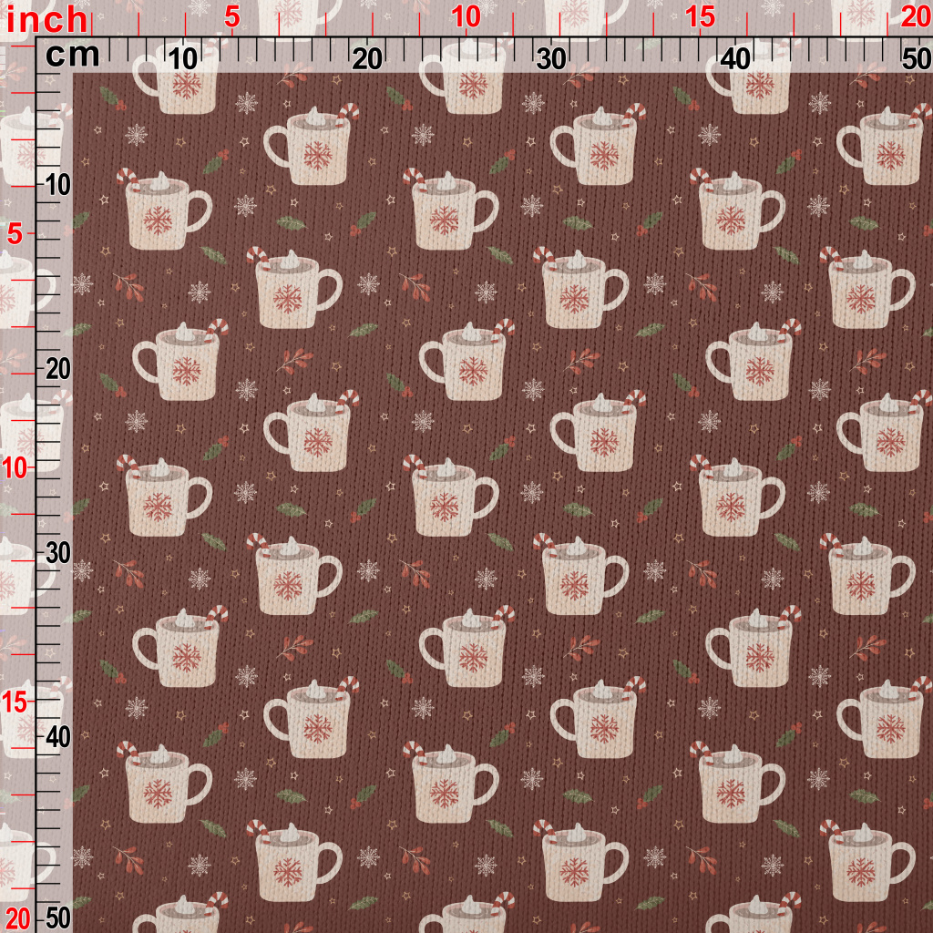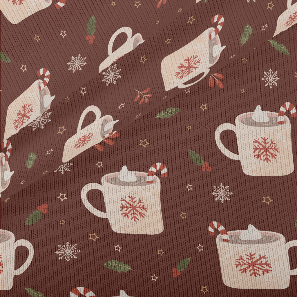 聖誕節飲品和雪花仿毛衣布(幅寬150公分)