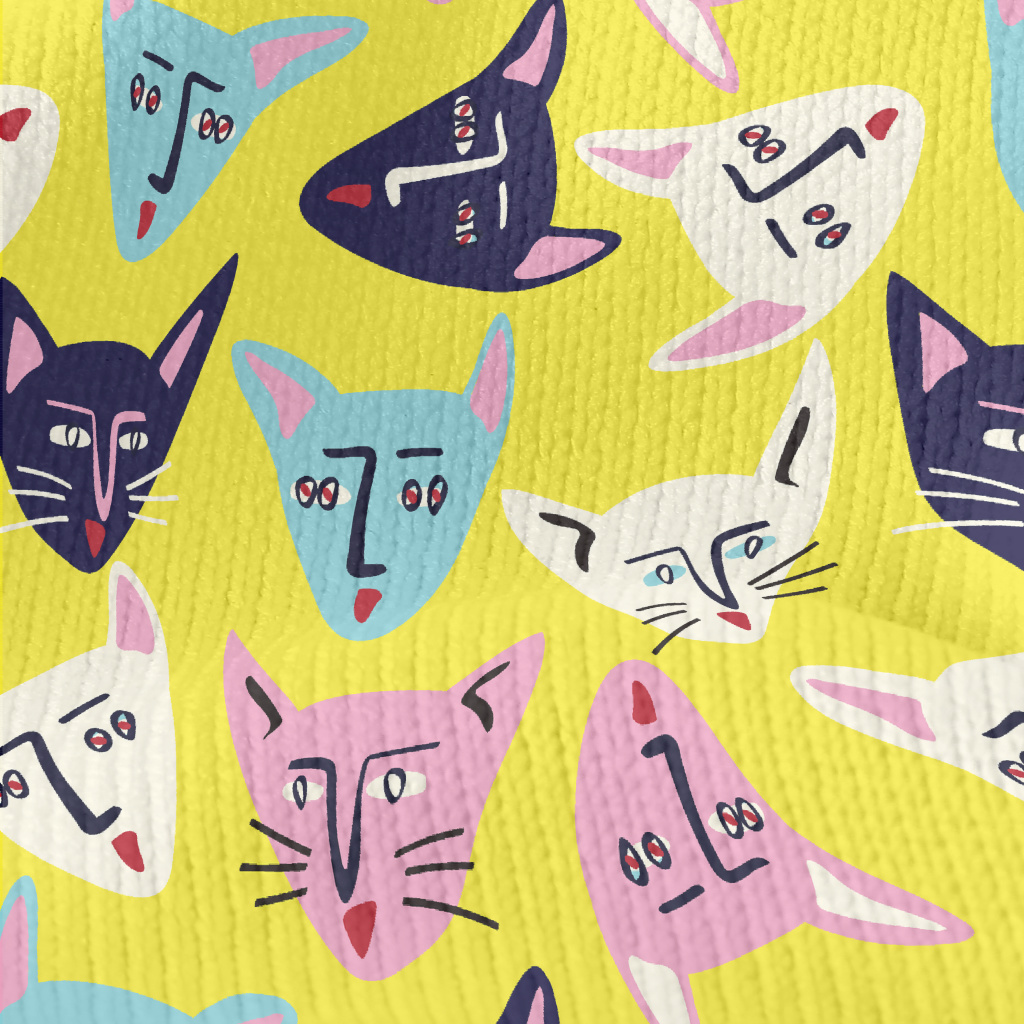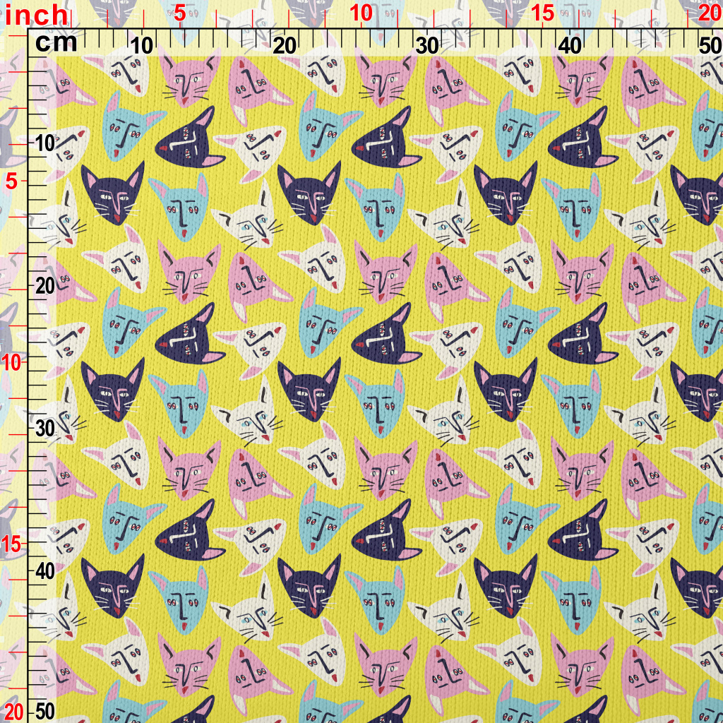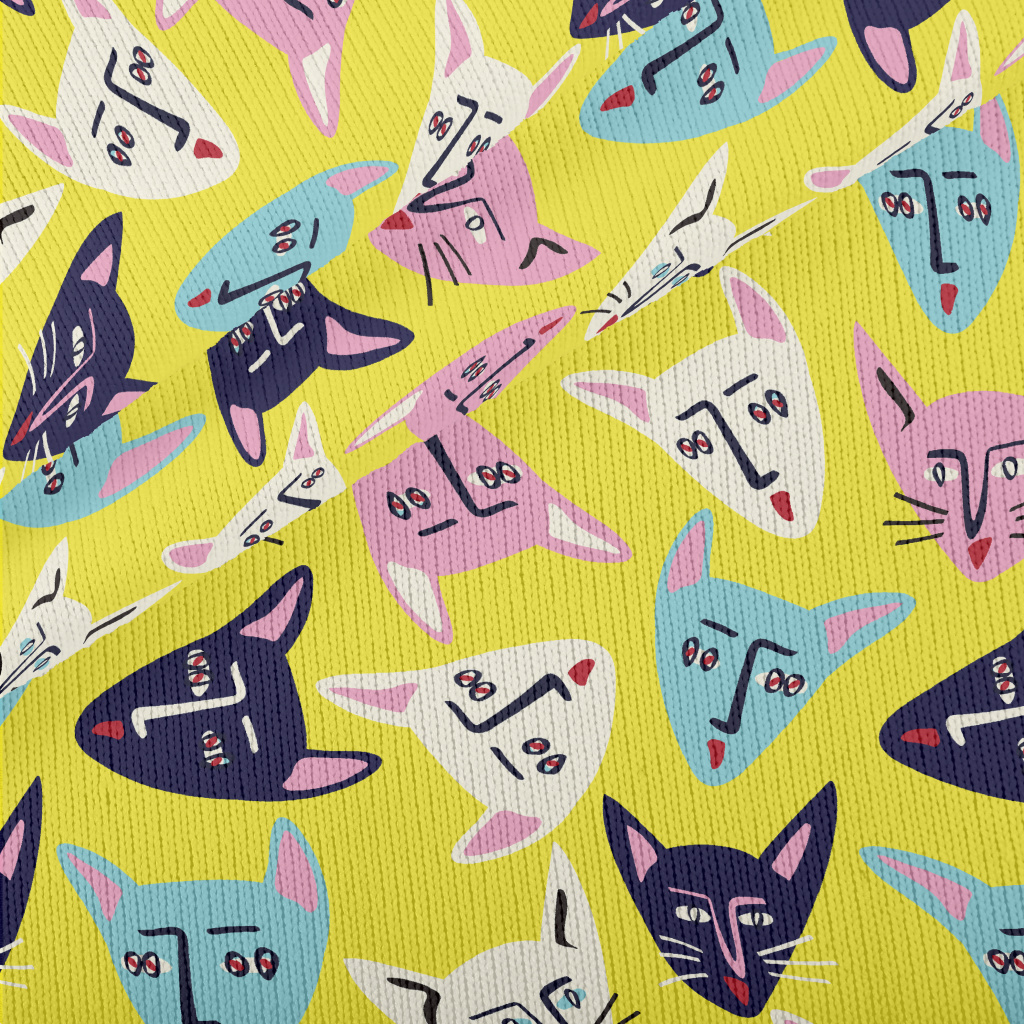 抽象彩色貓咪仿毛衣布(幅寬150公分)