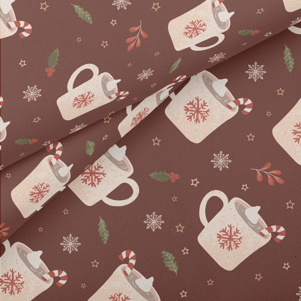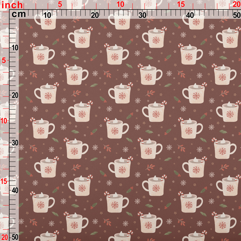 聖誕節飲品和雪花薄棉布(幅寬150公分)