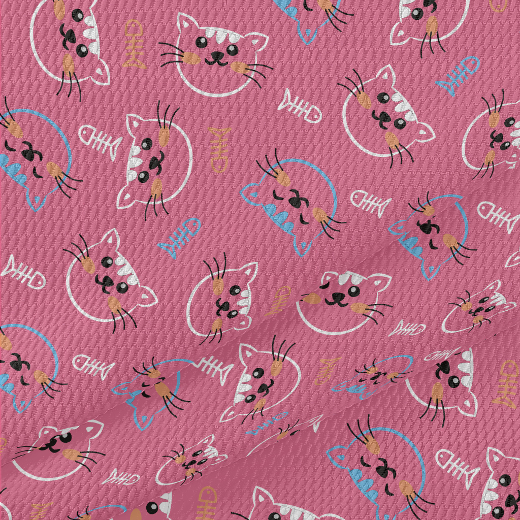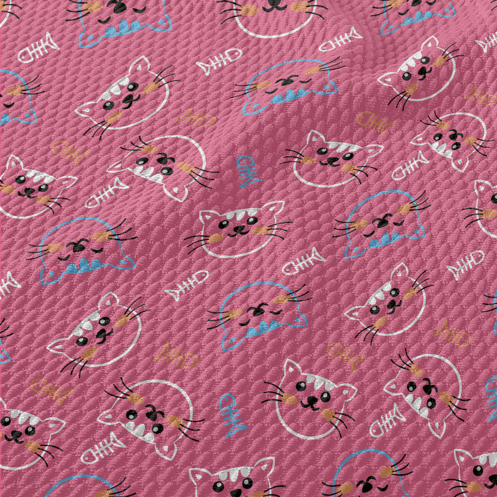 線條開心貓咪和魚骨頭泡泡布(幅寬160公分)