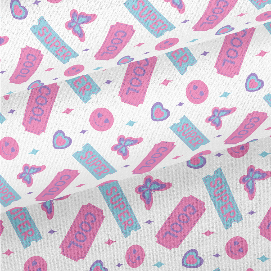 鮮豔彩色英文愛心蝴蝶雪紡布(幅寬150公分)