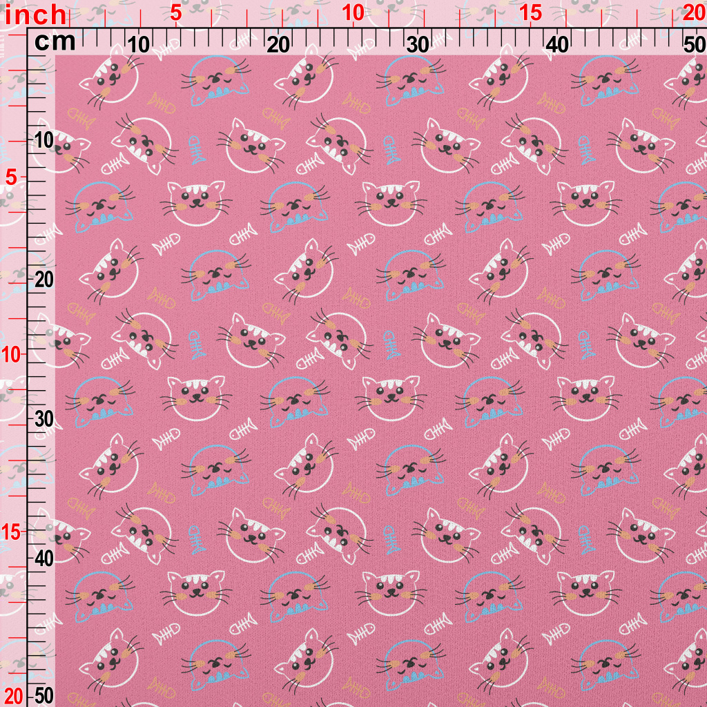線條開心貓咪和魚骨頭雪紡布(幅寬150公分)