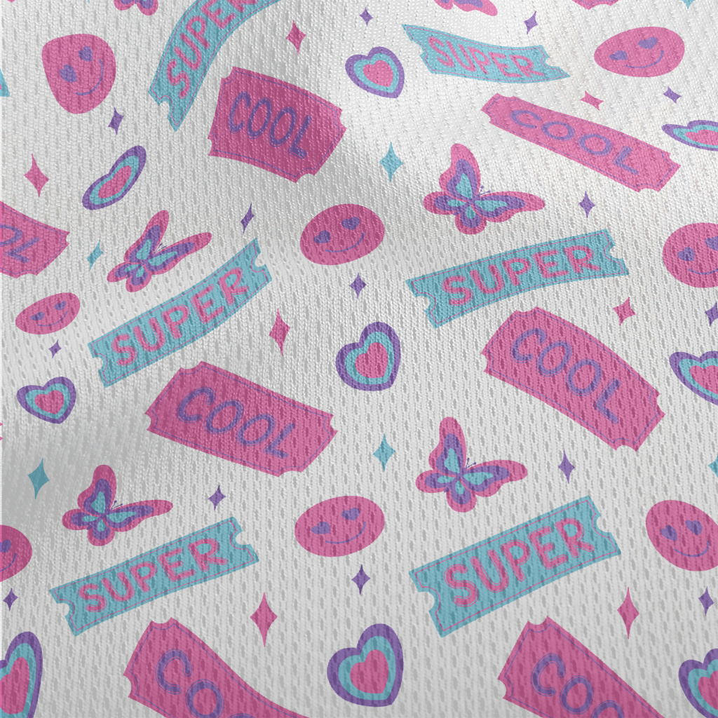 鮮豔彩色英文愛心蝴蝶鳥眼布(幅寬160公分)