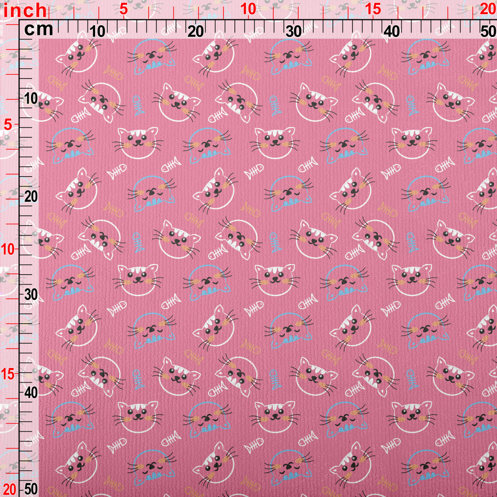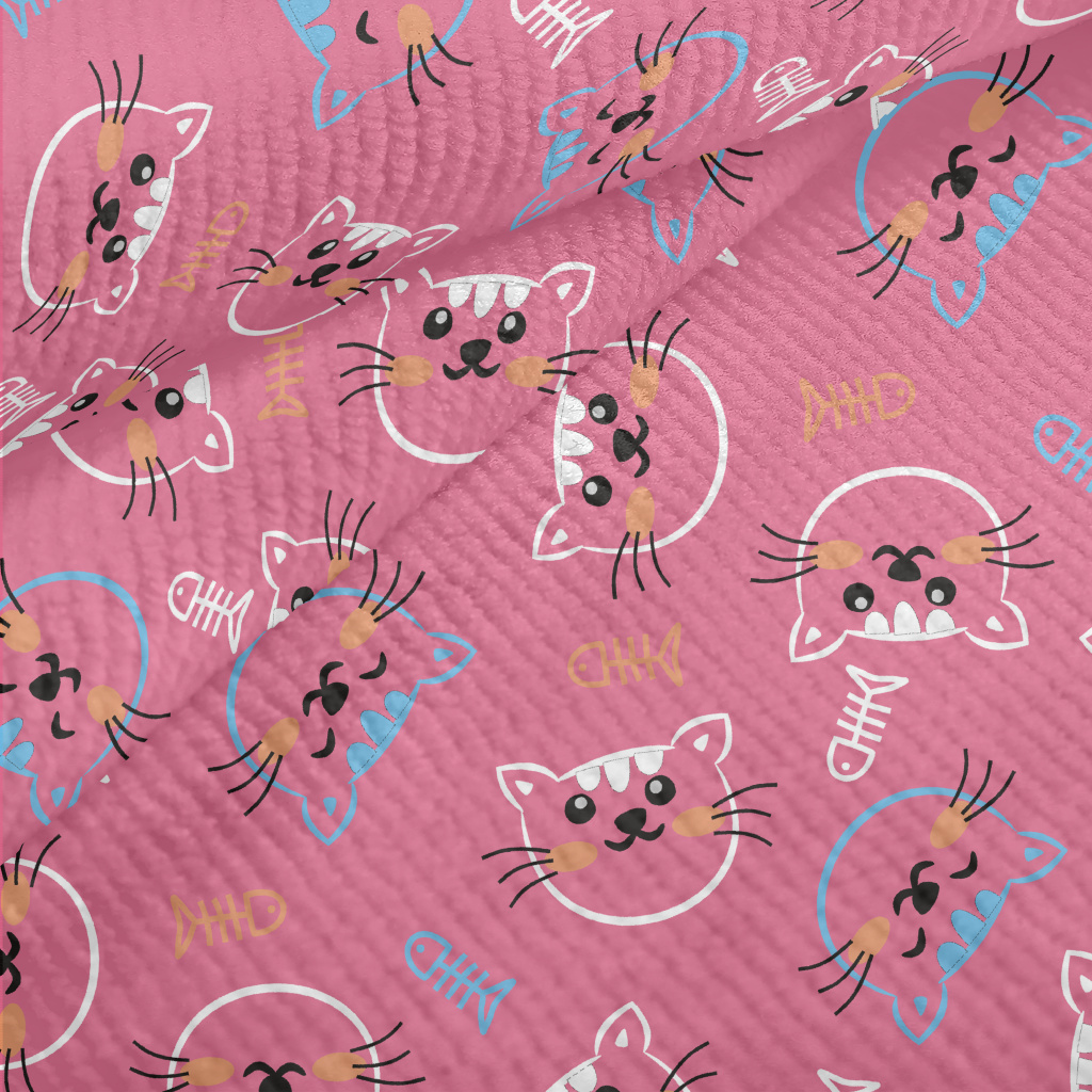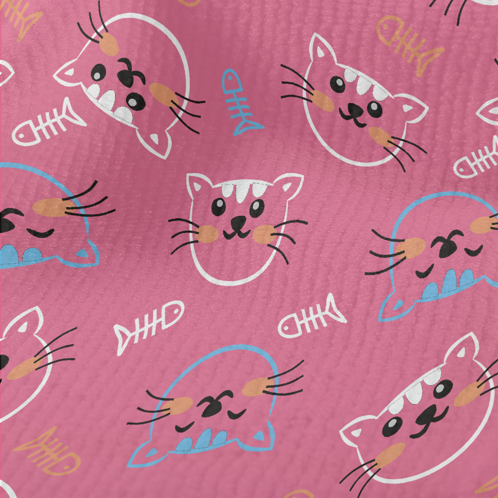 線條開心貓咪和魚骨頭毛巾布(幅寬160公分)