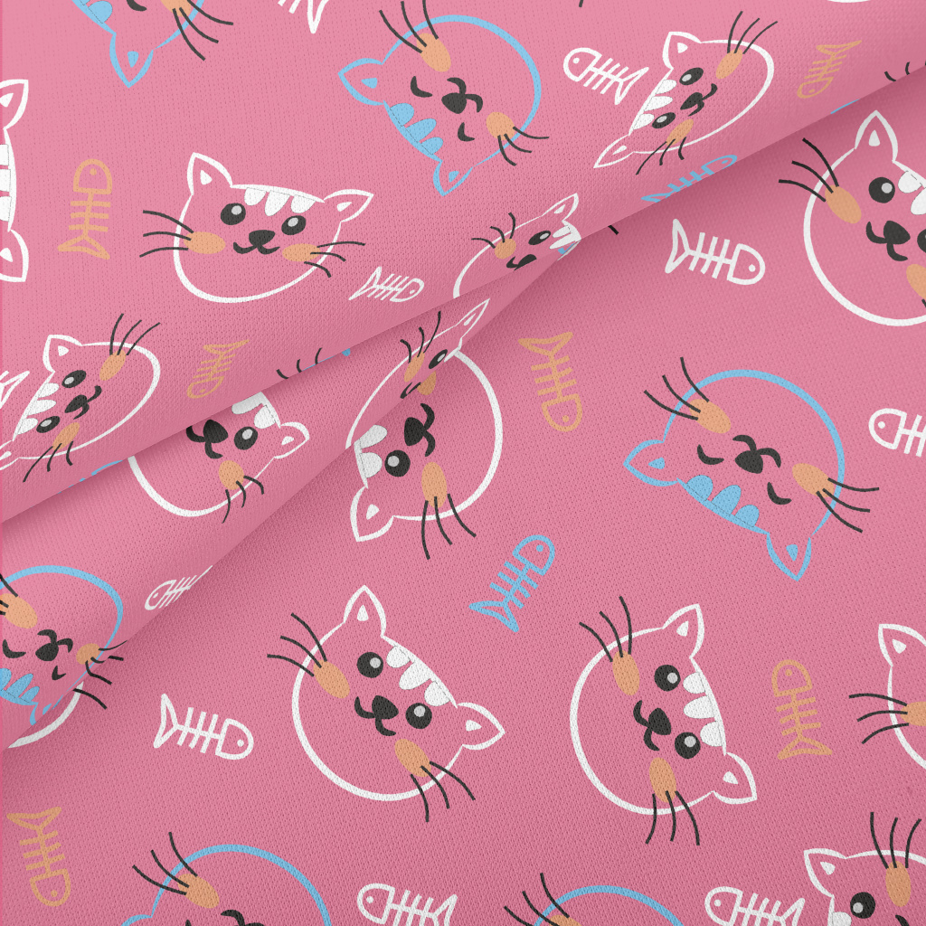 線條開心貓咪和魚骨頭羅馬布(幅寬160公分)