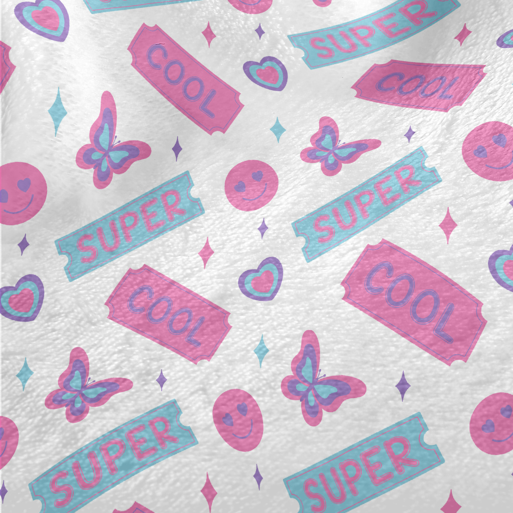 鮮豔彩色英文愛心蝴蝶法蘭絨(幅寬150公分)
