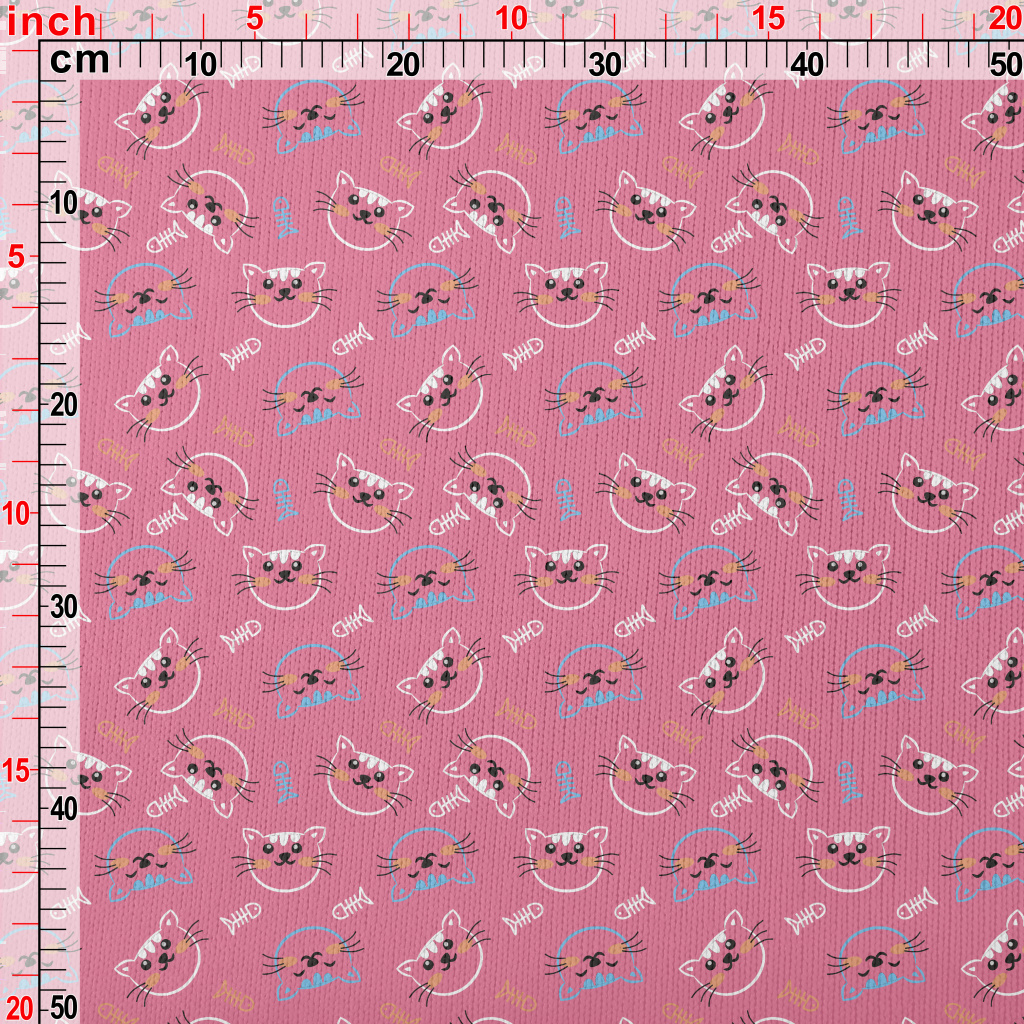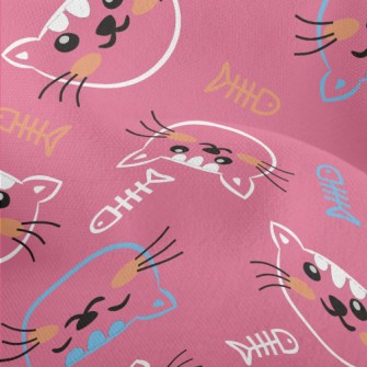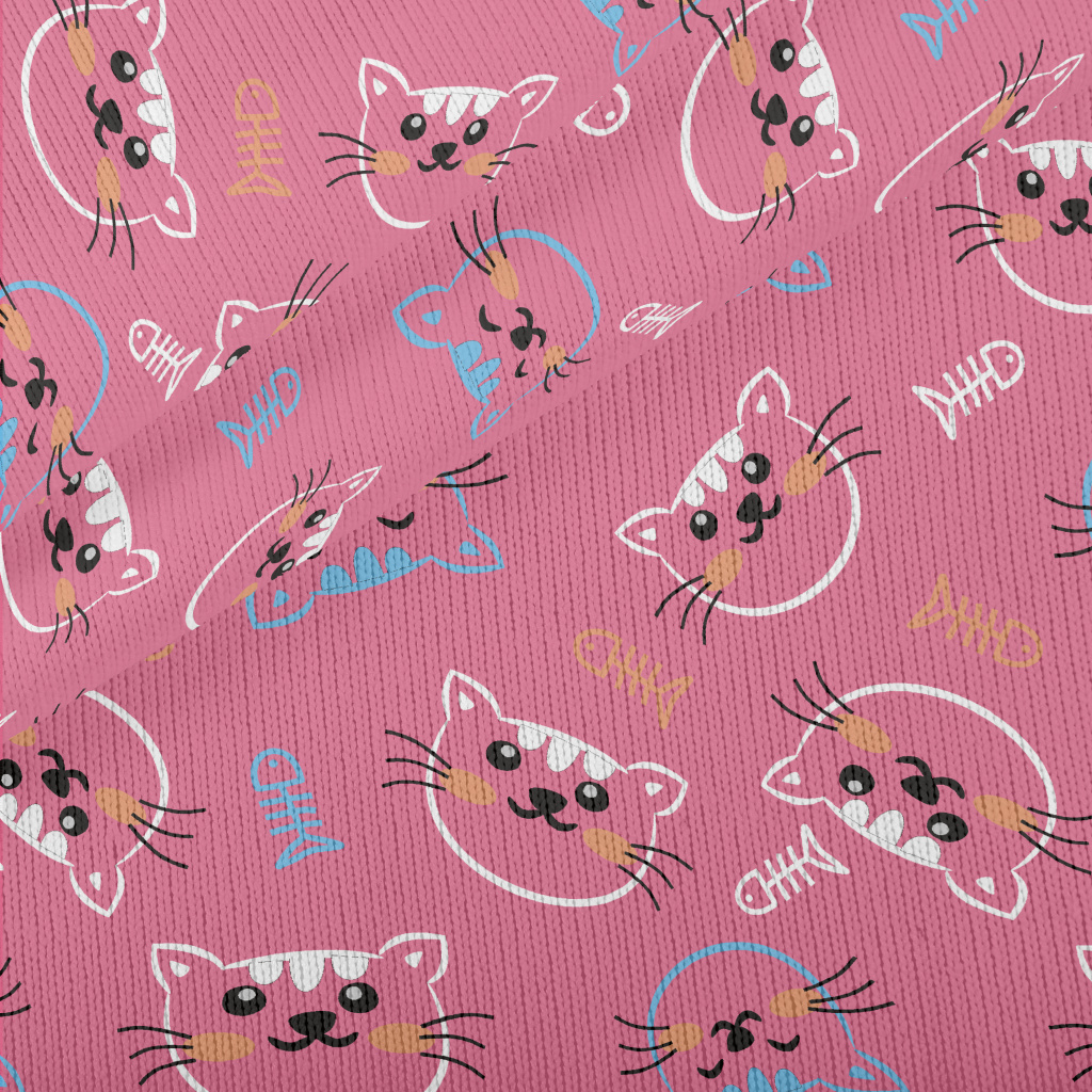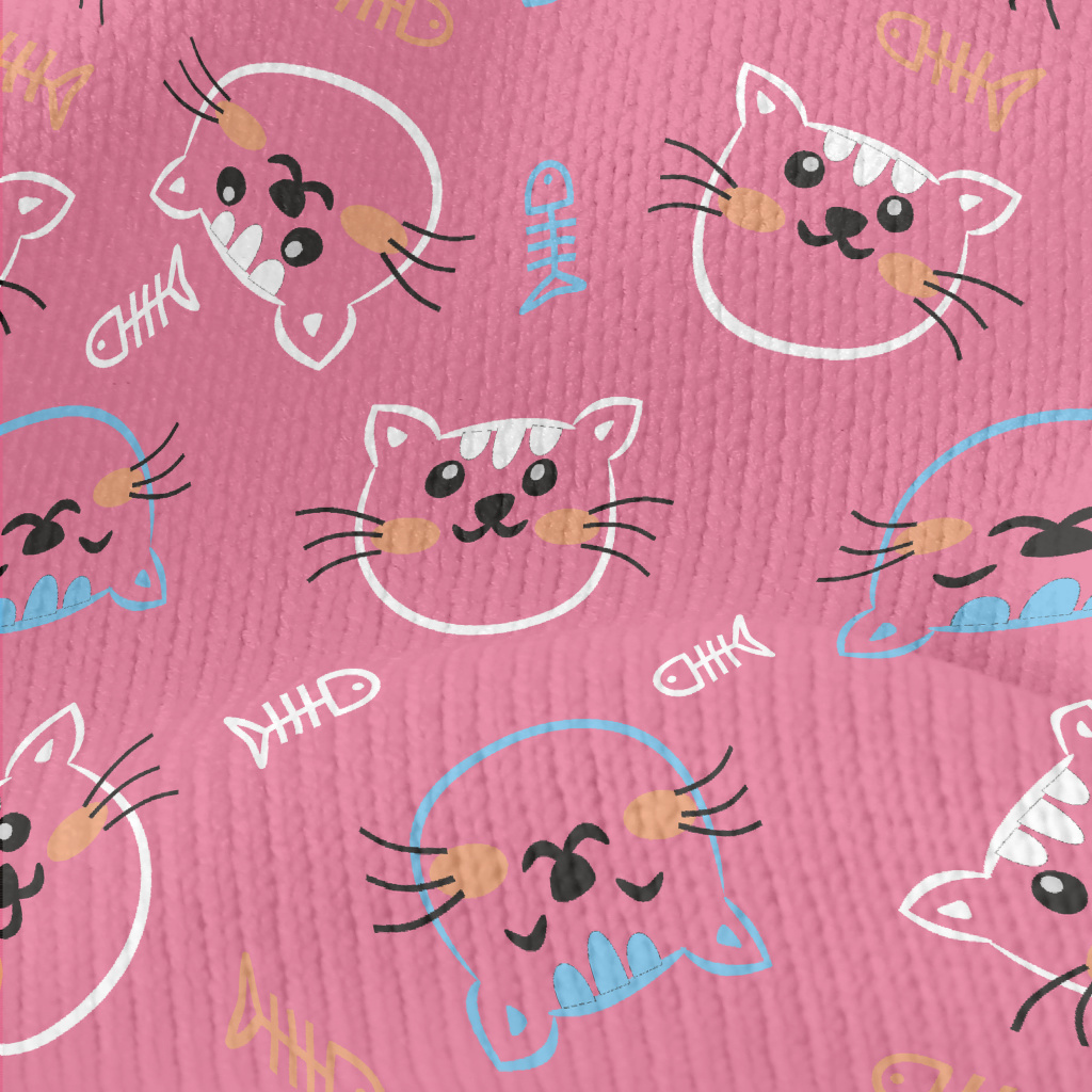 線條開心貓咪和魚骨頭仿毛衣布(幅寬150公分)