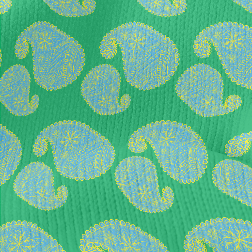藍色精細花朵渦紋花仿毛衣布(幅寬150公分)