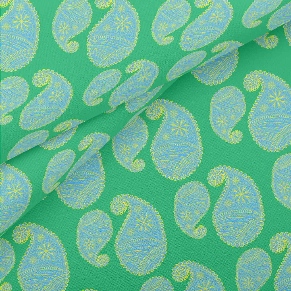 藍色精細花朵渦紋花薄棉布(幅寬150公分)