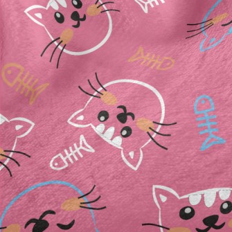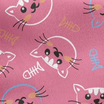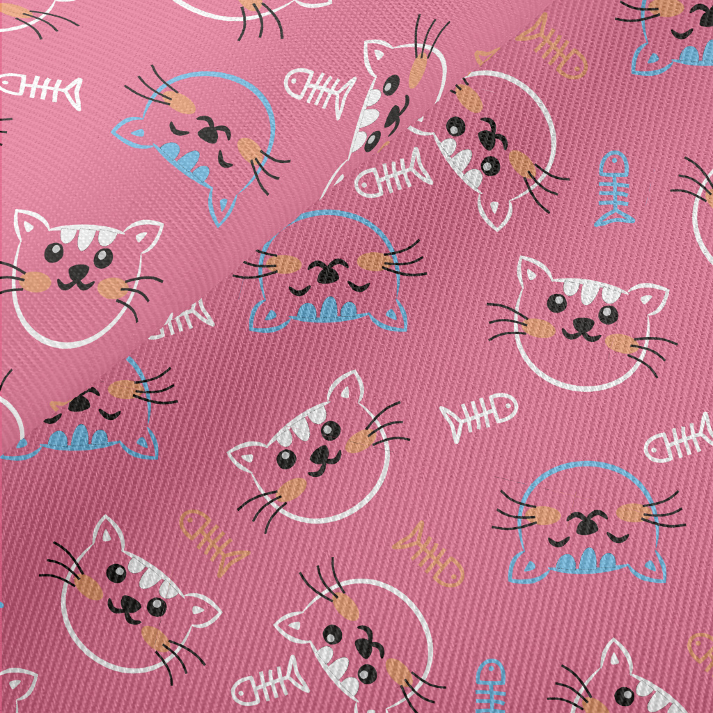 線條開心貓咪和魚骨頭厚棉布(幅寬150公分)