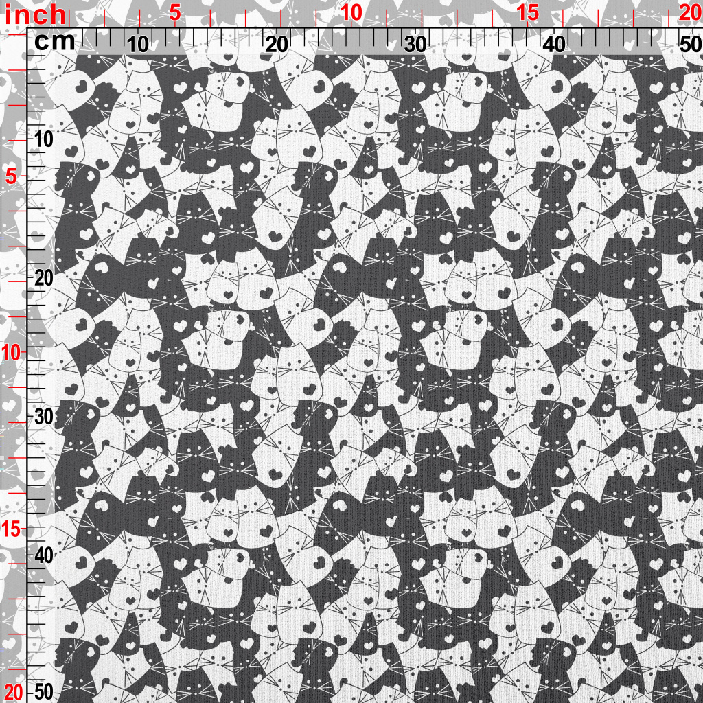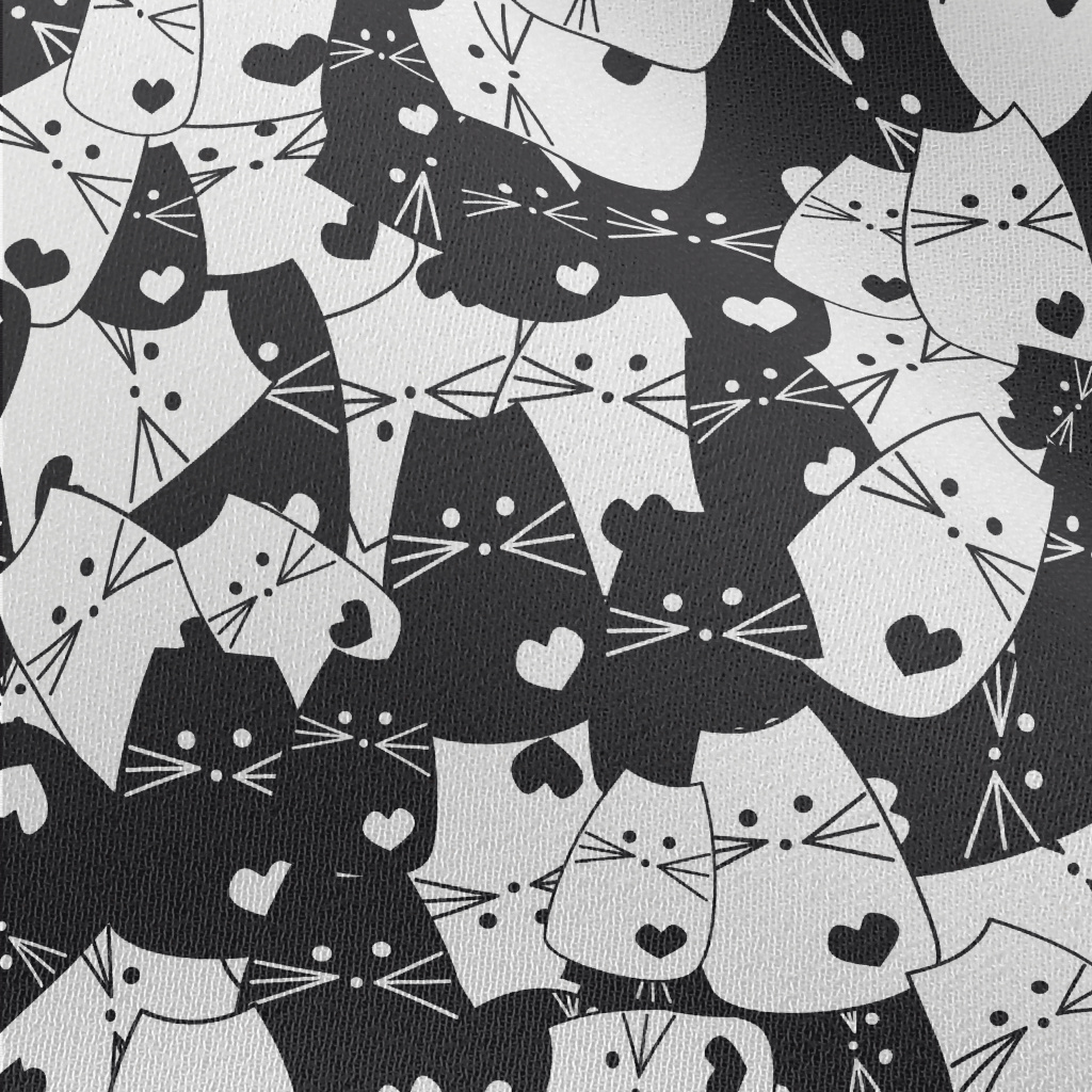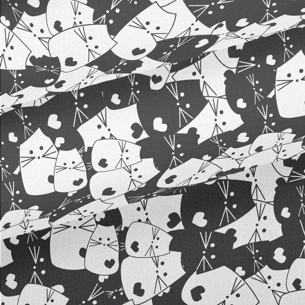簡約黑白愛心貓咪雪紡布(幅寬150公分)