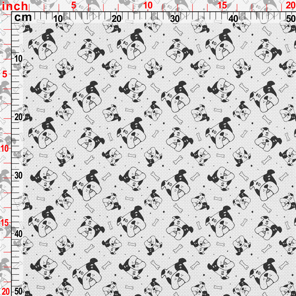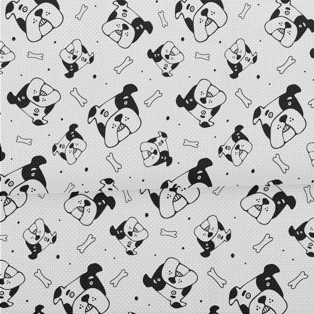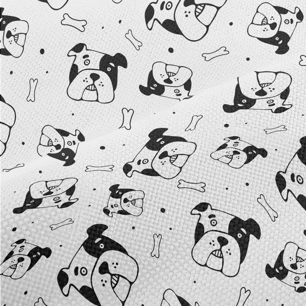 卡通塗鴉風格狗頭麻布(幅寬150公分)
