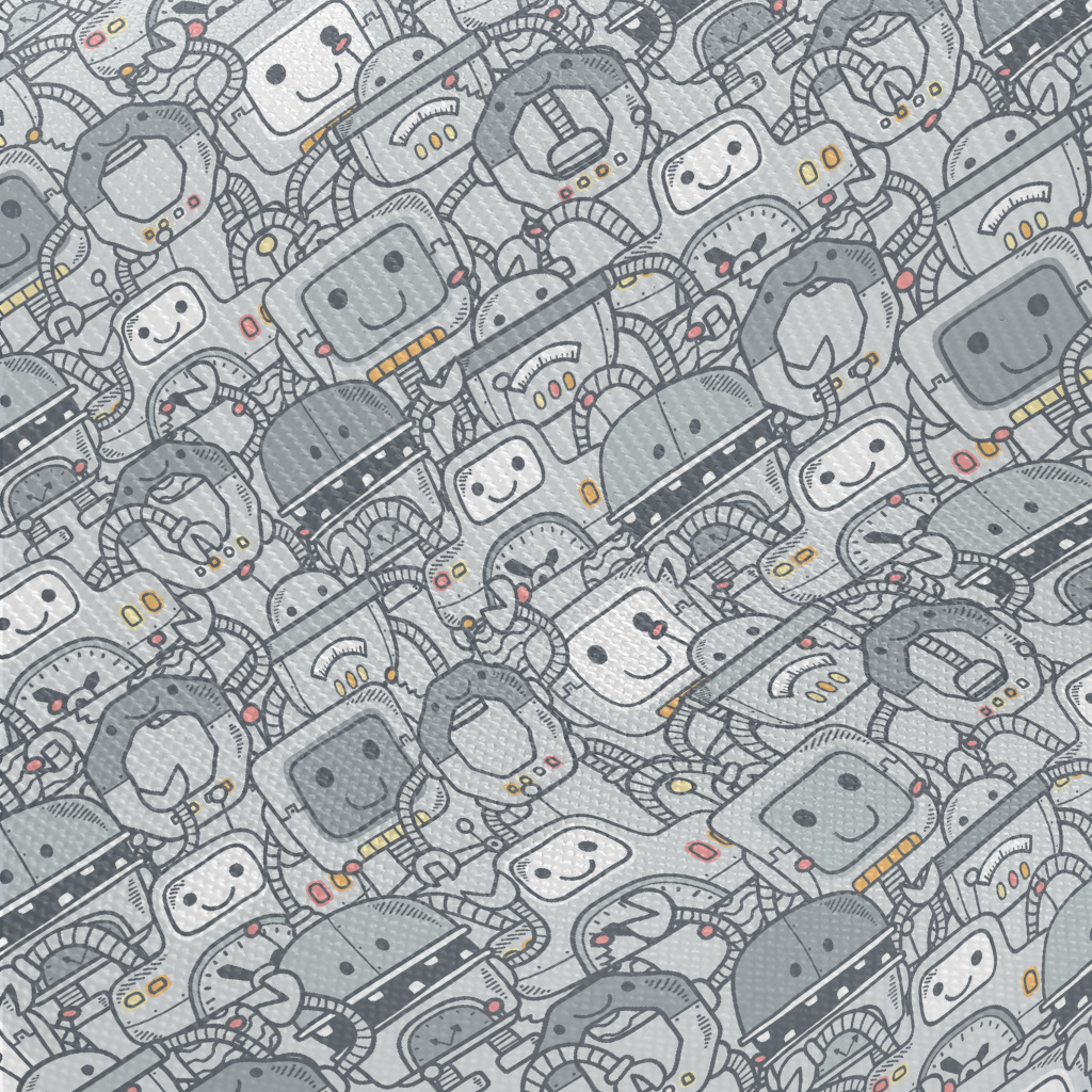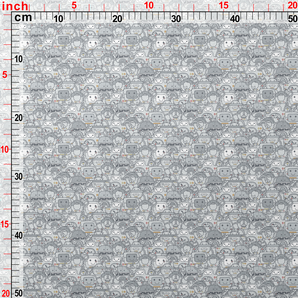塗鴉各種可愛機器人斜紋布(幅寬150公分)