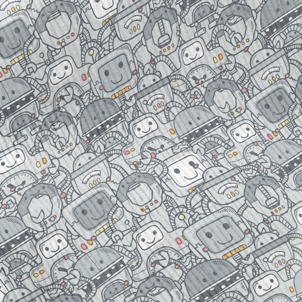 塗鴉各種可愛機器人燈芯絨(幅寬150公分)