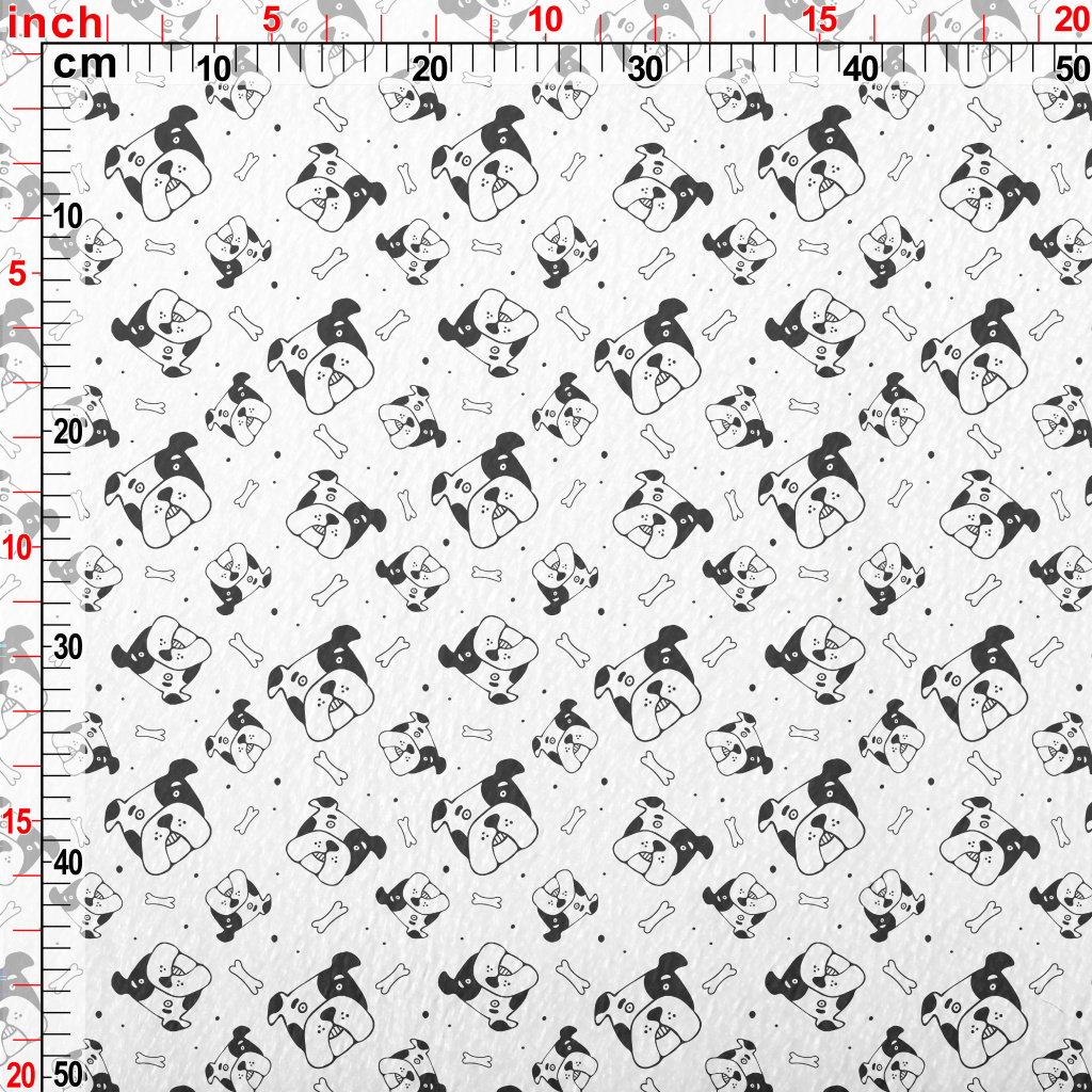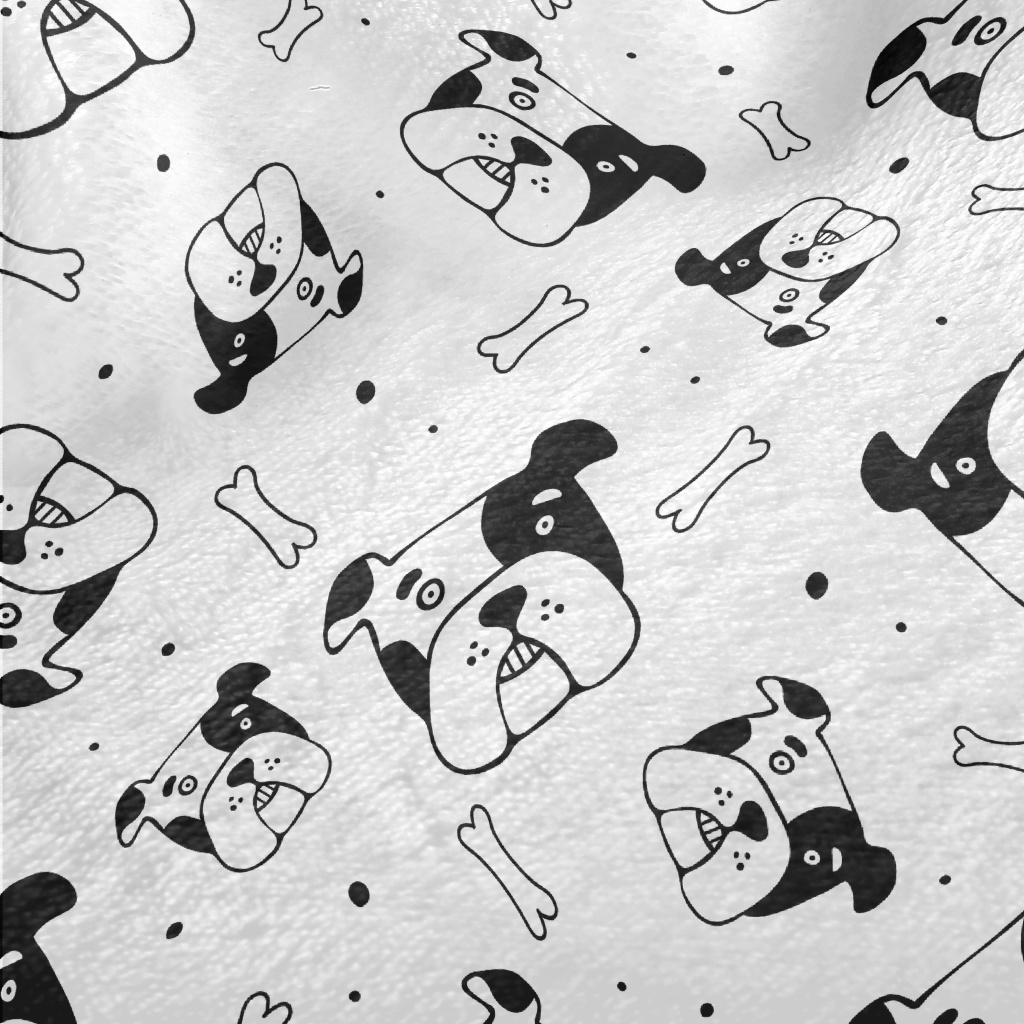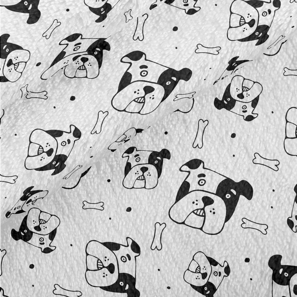 卡通塗鴉風格狗頭法蘭絨(幅寬150公分)