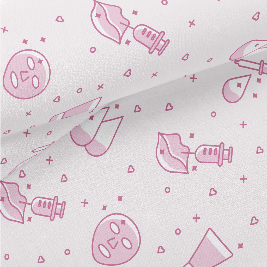 粉色醫美美容圖案竹節麻(幅寬150公分)