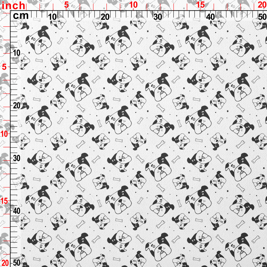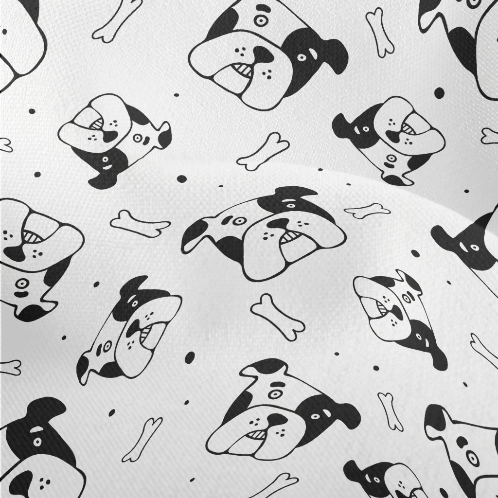 卡通塗鴉風格狗頭竹節麻(幅寬150公分)